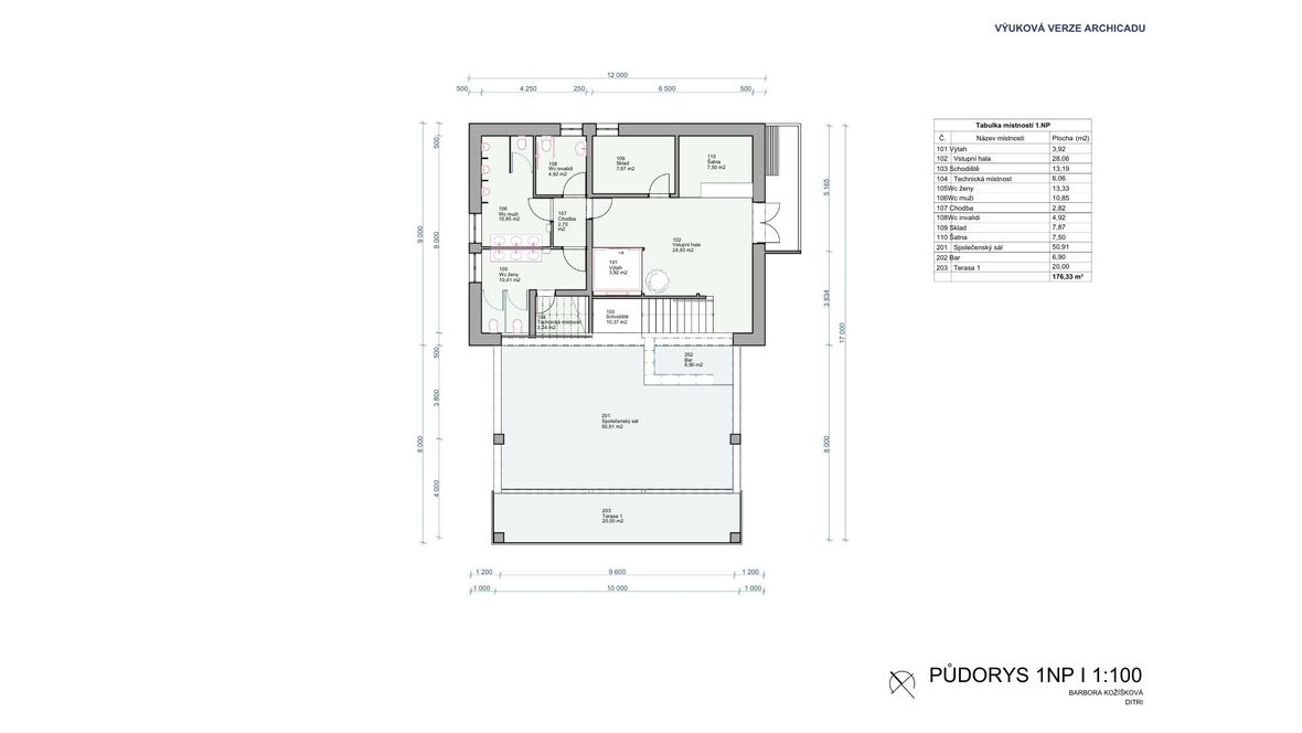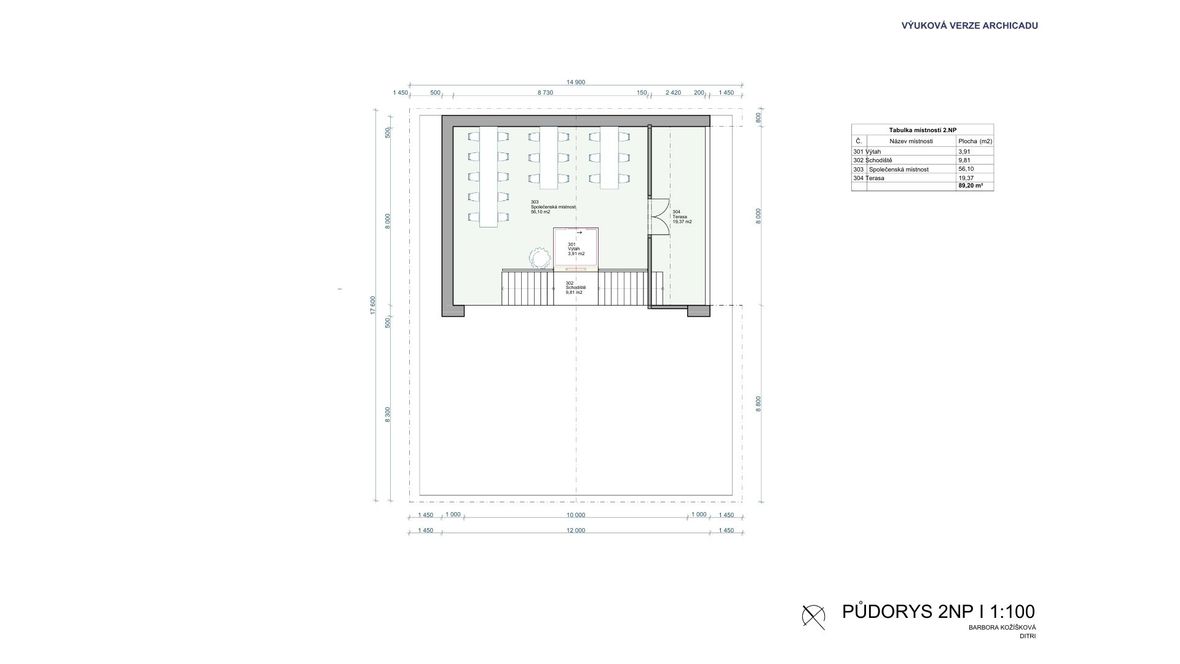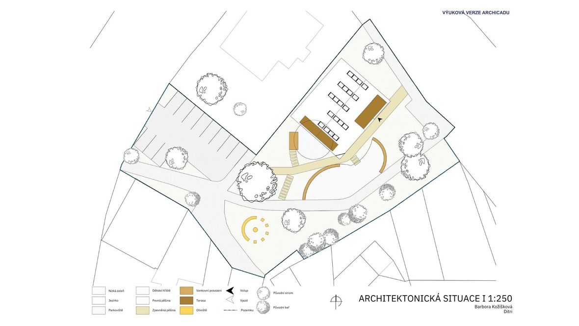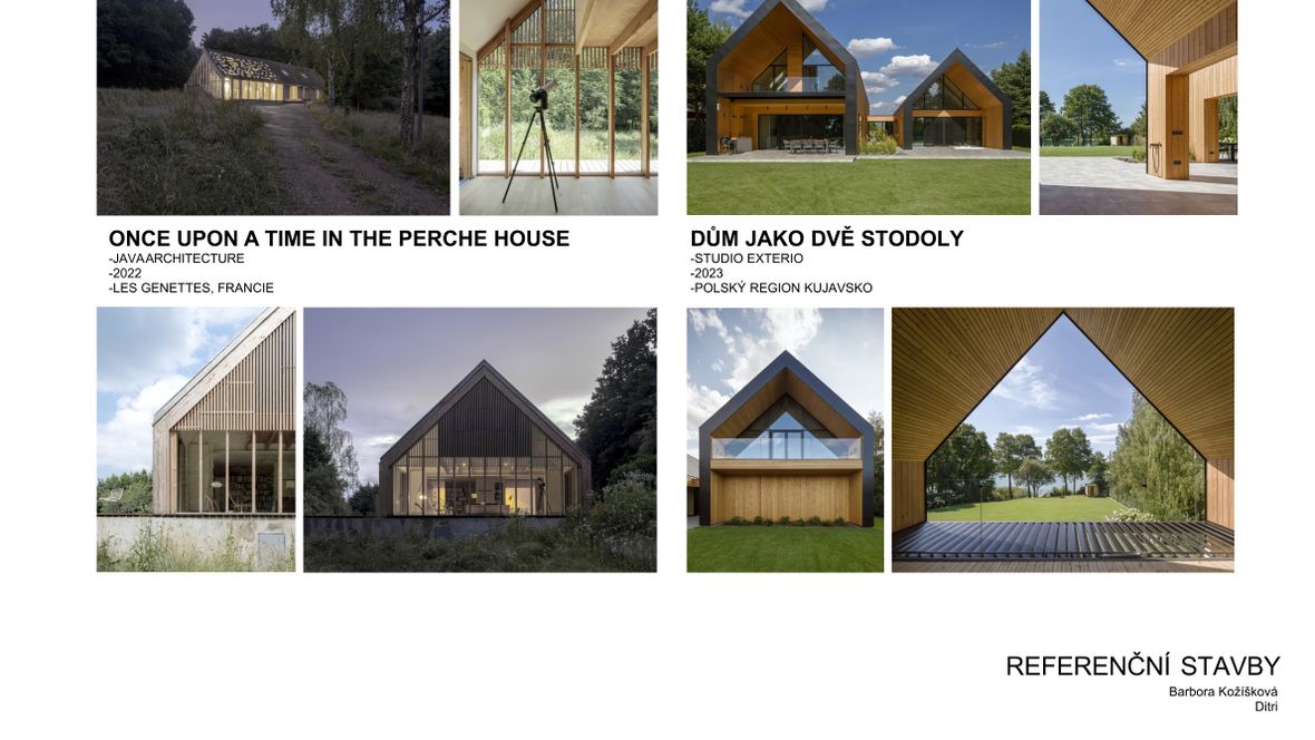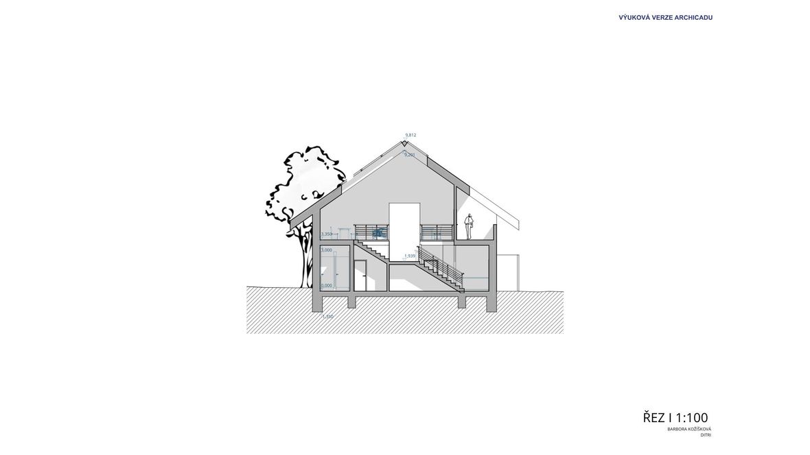 Cílem tohoto návrhu je maximálně vnést otevřený koncept do celé stavby. Proto je společenský sál jednou stěnou kompletně otevřený do vnitra pozemku a zároveň druhou stranou propojený s druhým patrem. Aby bylo alespoň částečně dosaženo soukromí je sál vyvýšený nad terénem. Název Ditri vznikl spojením předložky Di což znamená dva a Tri což znamená tři. A to proto, že celá stavba je ve výšce dvou pater a tak zapadá do okolní výstavby, ale ve skutečnosti obsahuje tři patra čímž ukazuje že se jedná o něco nového.
