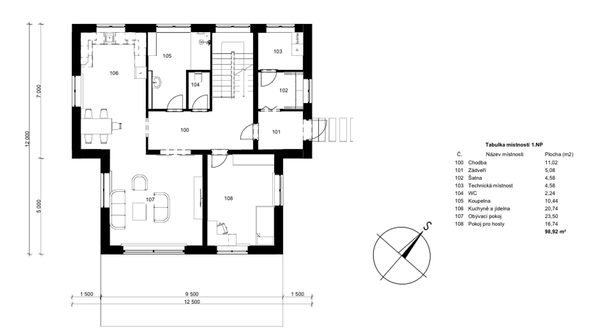 Původním záměrem při navrhování tohoto objektu bylo vytvoření prostoru, kde by se mladí lidé mohli scházet a tvořit nezapomenutelné zážitky. Může být využíván pro sezónní rekreaci, ale také pro trvalé bydlení. Dům je zastřešen sedlovou střechou. Jedná se o dvoupodlažní stavbu postavenou ve stěnovém konstrukčním systému. Dostatek denního světla je zajištěn nejrůznějšími střešními okny značky VELUX a také velkými fasádními okny, které světlo dokonale propouští. Disponuje čtyřmi prostornými pokoji, z toho jeden - v přízemí - je určen především pro pobyt případných hostů. Fasádu tvoří dřevěný obklad, který dodává celému objektu přírodní nádech a jeho obyvatelům pocit bezpečí a klidu.