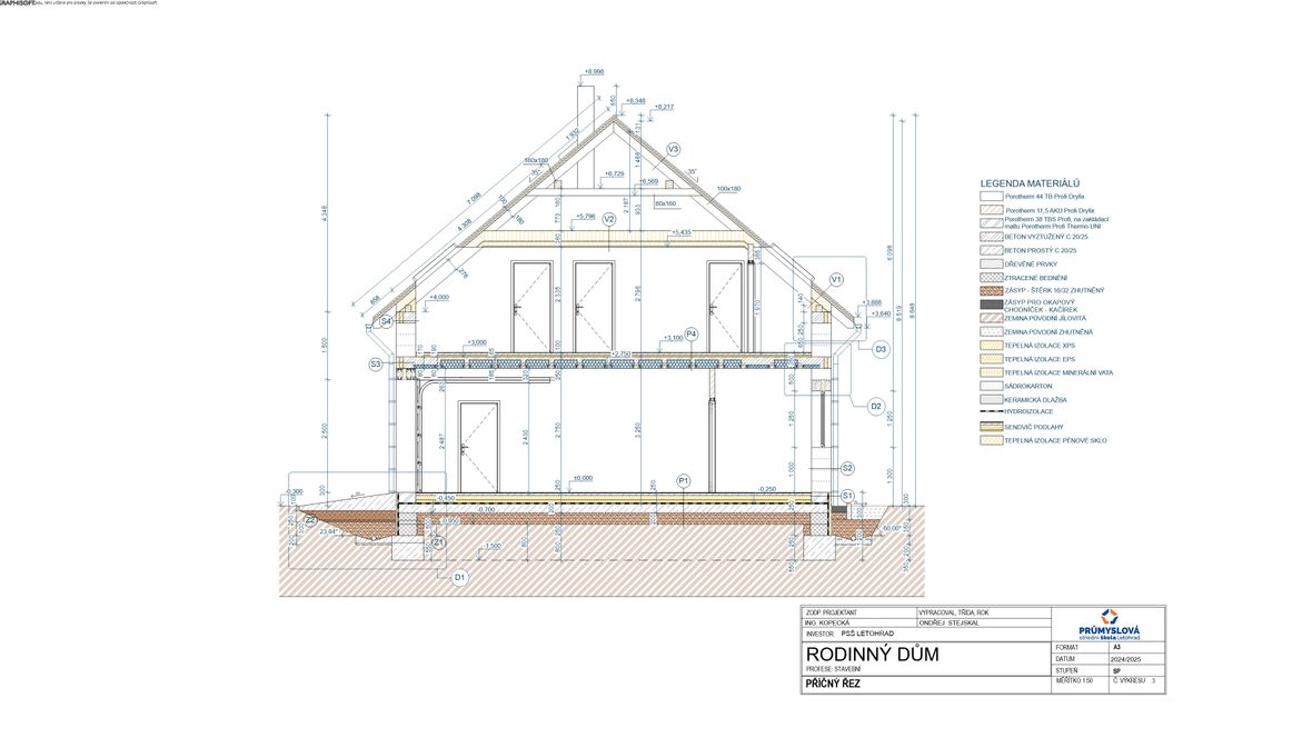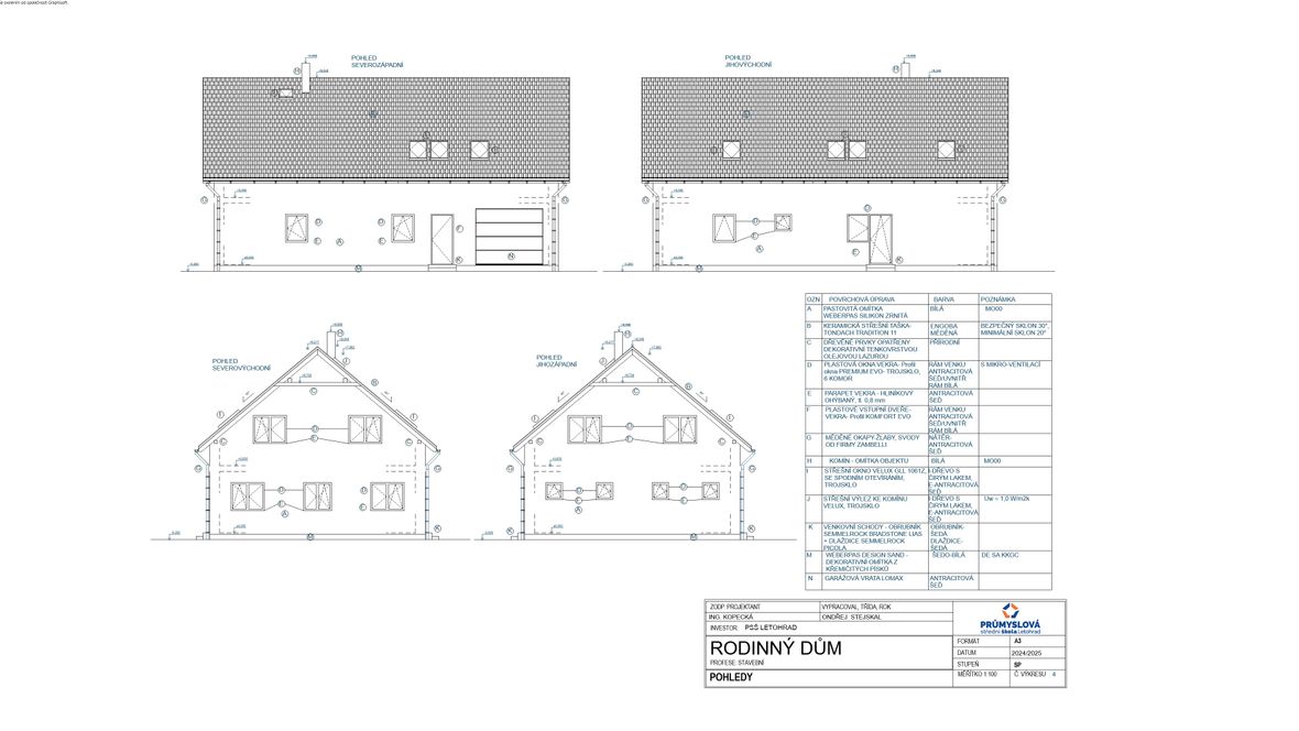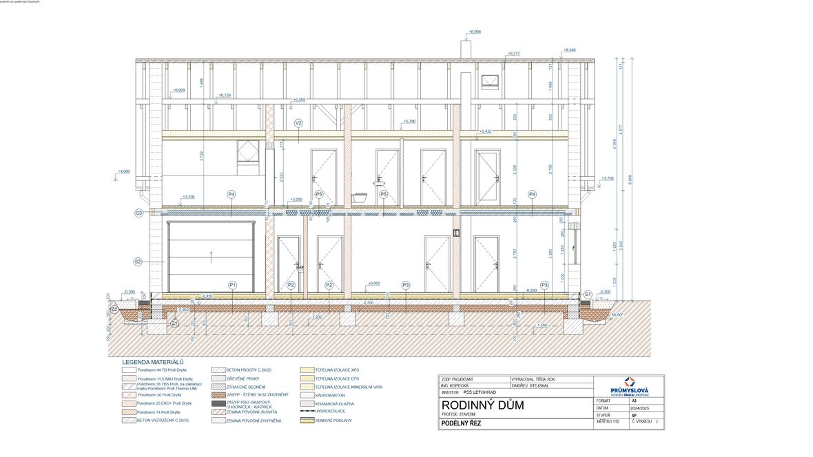 Tento rodinný dům je navržen jako vícepodlažní podlažní, 1np, 2np V přízemí se nachází tyto místnosti – zádveří/vchod, garáž, technická místnost, chodba, WC, koupelna, kuchyň+Jídelna, obývací pokoj, pokoj, prostor schodiště. V podkroví se nachází tyto místnosti – chodba, 2x pokoj, ložnice, koupelna,2x WC, sklad, šatna.