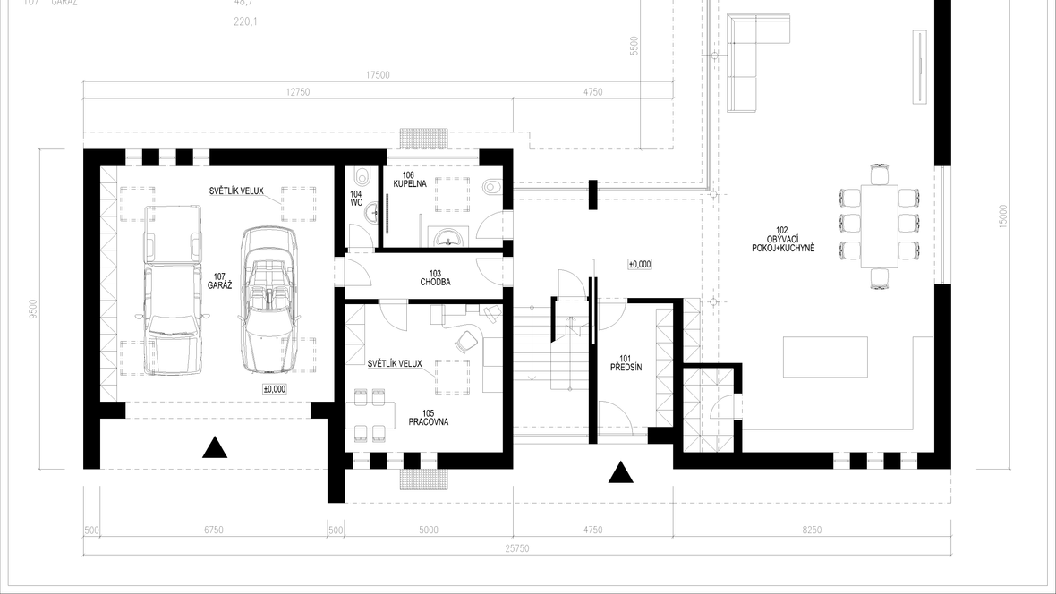 RD - GEORGE je vícegenerační dům určený pro pětičlennou rodinu. Dům je postaven z broušených tvárnic HELUZ 50. Celková zastavěná plocha činí 298,2 m² a celková užitná plocha je 446,3 m² Tento rodinný dům byl navrhnut ve stylu otevřených prostor a vzdušnosti, tak aby bylo zajištěno pohodlné bydlení. Dům využívá světlíky Velux pro prosvětlení denním světlem.