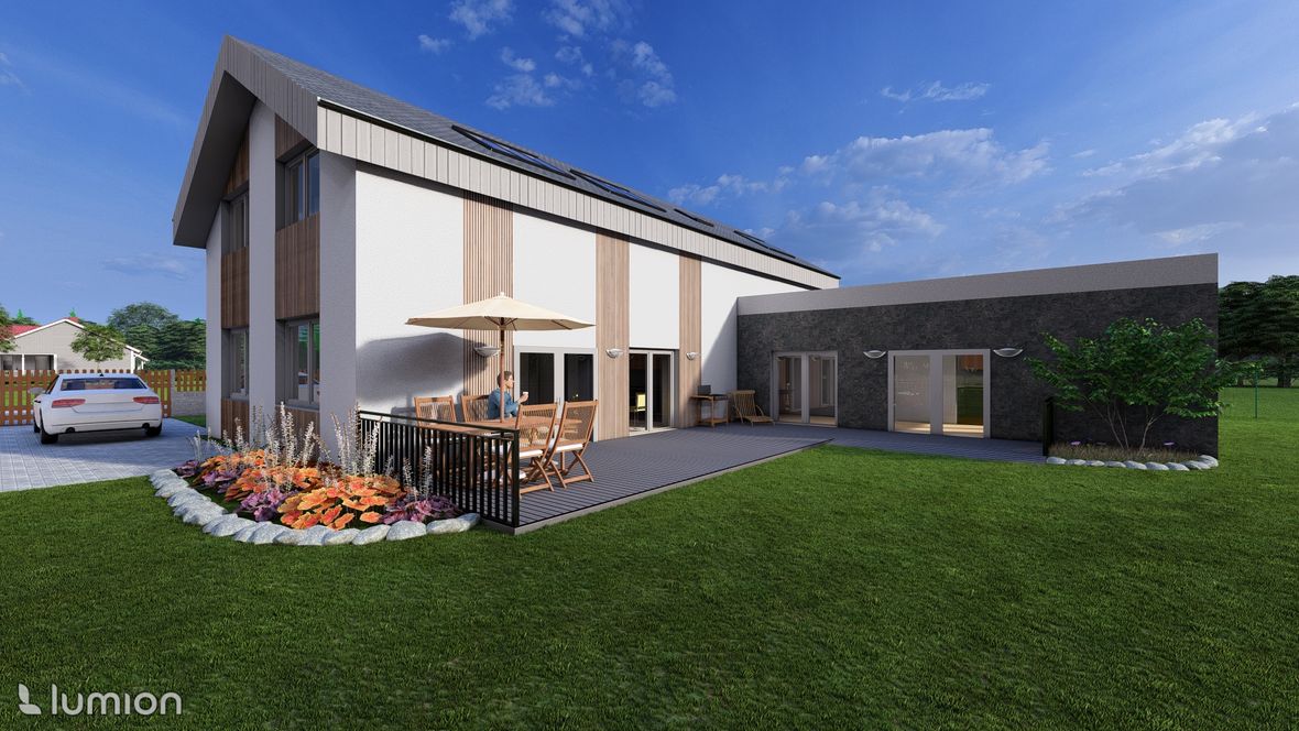 Rodinný dům je určen pro dvě generace a nabízí dvě samostatné bytové jednotky. Jedna část je částečně bezbariérová – má bezbariérový vstup, upravenou koupelnu a širší průchody. Dům je navržen s důrazem na pohodlí, soukromí a vzájemné soužití rodiny.