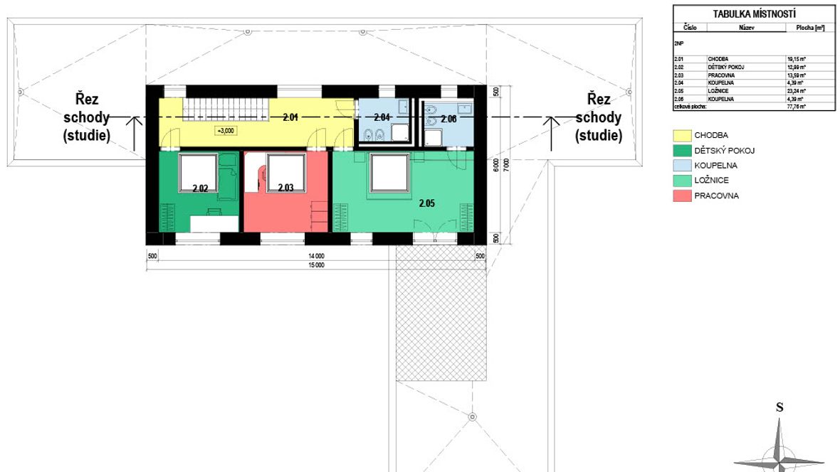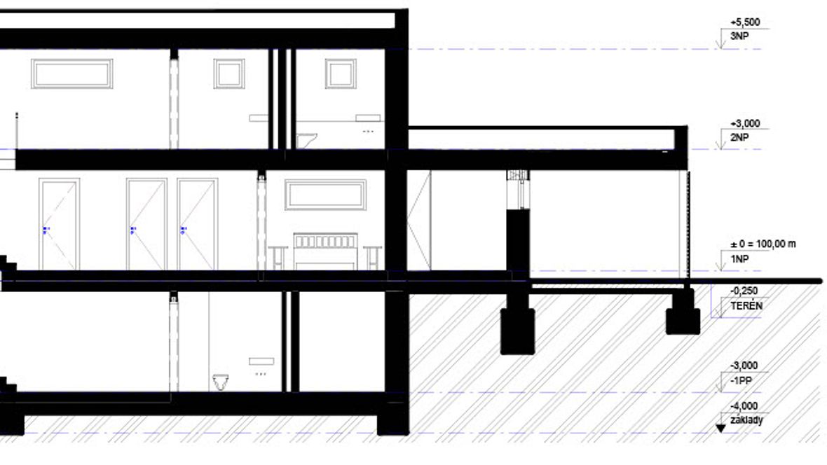 Jedná se o dvougenerační rodinný dům s dvěma bytovými jednotkami z toho jedna bytová jednotka slouží pro tří člennou rodinu, je tří podlažní (částečně podsklepená s patrem) a druhá bytová jednotka je navržena jako jednopodlažní pro starší pár se ztíženou schopností pohybu. Pro každou bytovou jednotku je navrženo parkovací stání. V podsklepené části je mimo jiné navržená i domácí posilovna.