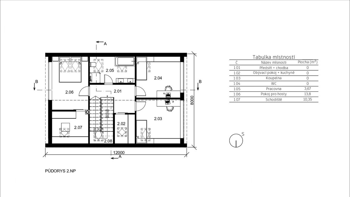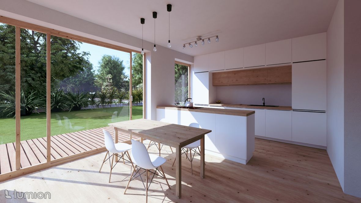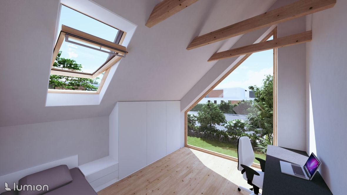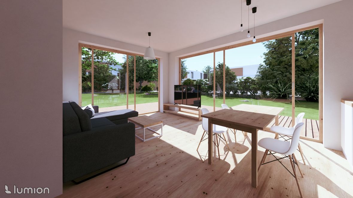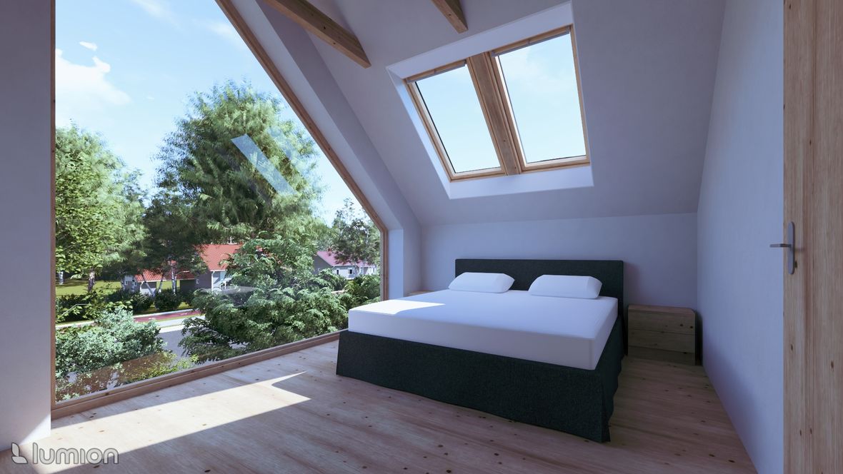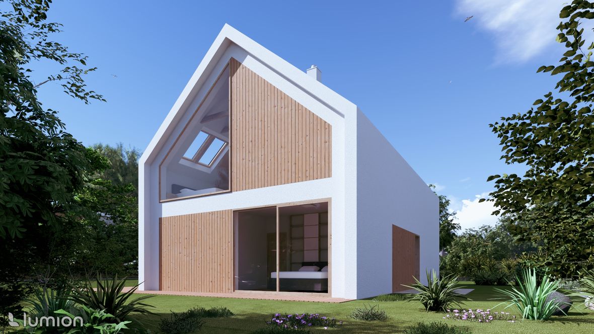 Architektonická koncepce domu je založena na minimalistickém designu s důrazem na jednoduchost a čisté linie. Stavba je navržena s ohledem na požadavky moderního bydlení, včetně aktuálních standardů komfortu a energetické účinnosti. Klíčovým prvkem jsou velkoformátová okna, která propojují interiér s exteriérem a umožňují přirozené prosvětlení. Střešní okna dále umocňují pocit otevřenosti a vzdušnosti. Celkový koncept vytváří harmonický prostor, který je flexibilní a snadno se přizpůsobí měnícím se potřebám obyvatel, a to bez nutnosti rozsáhlých rekonstrukcí.