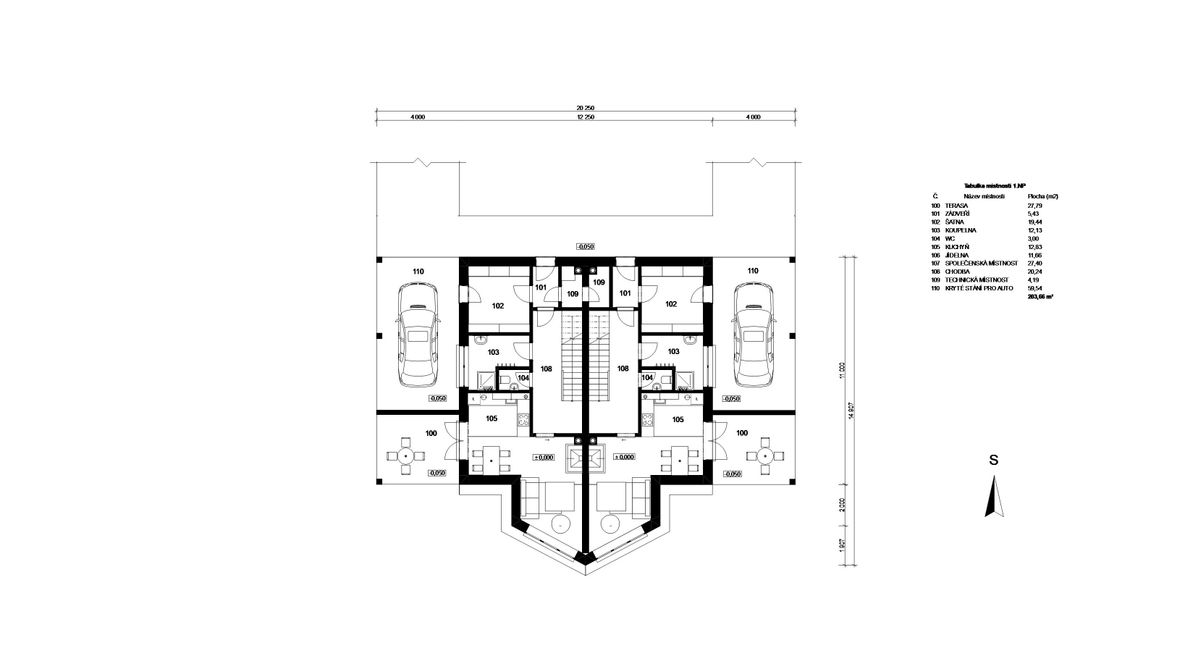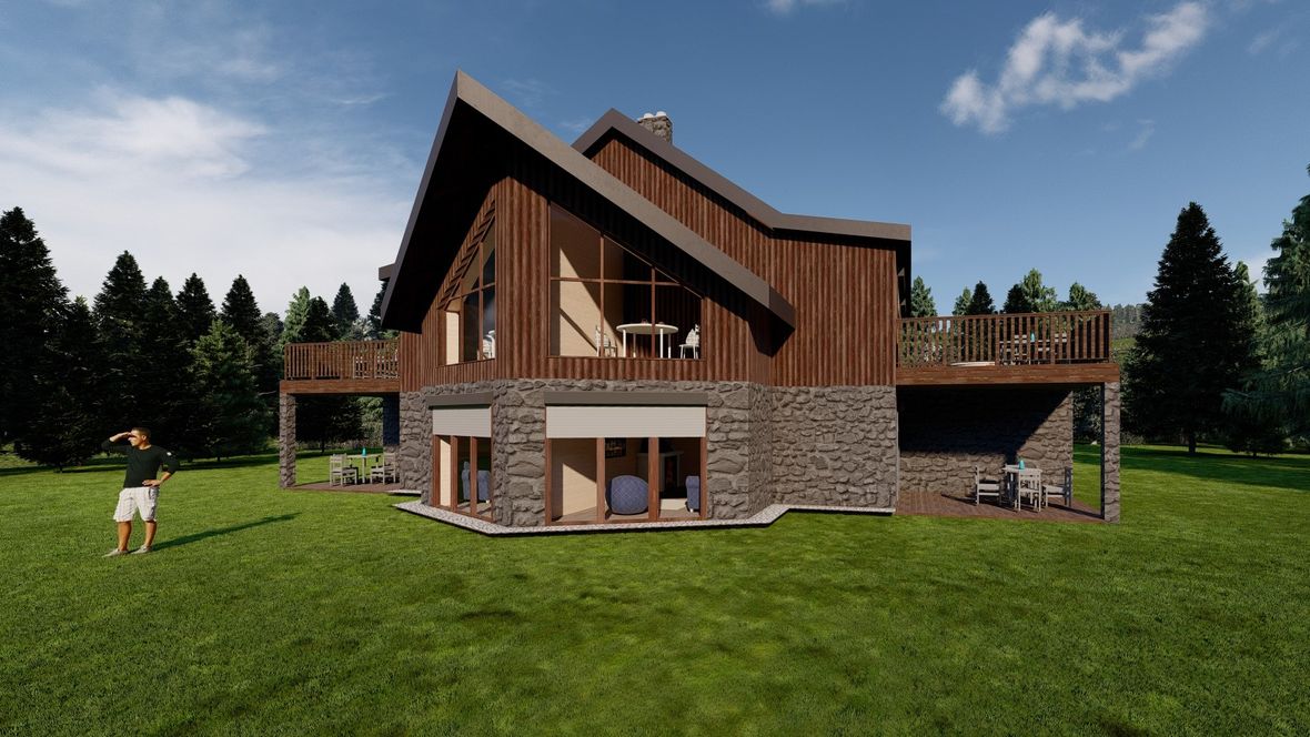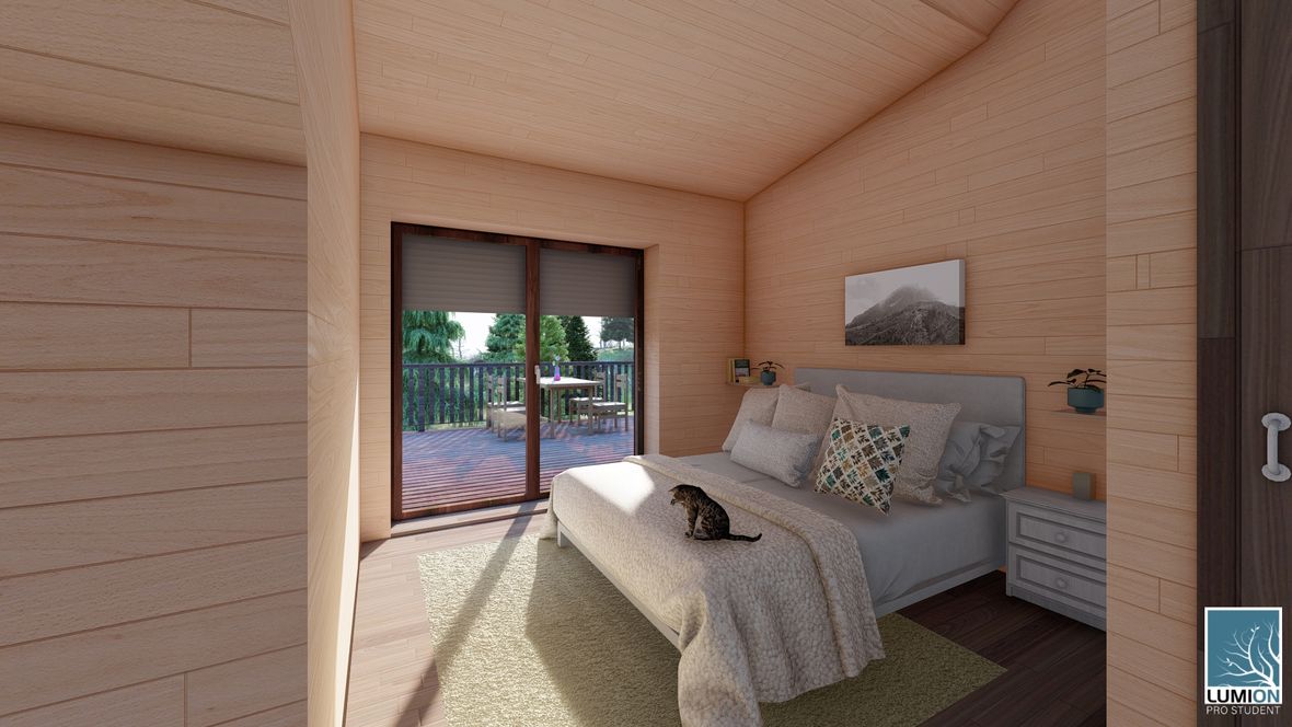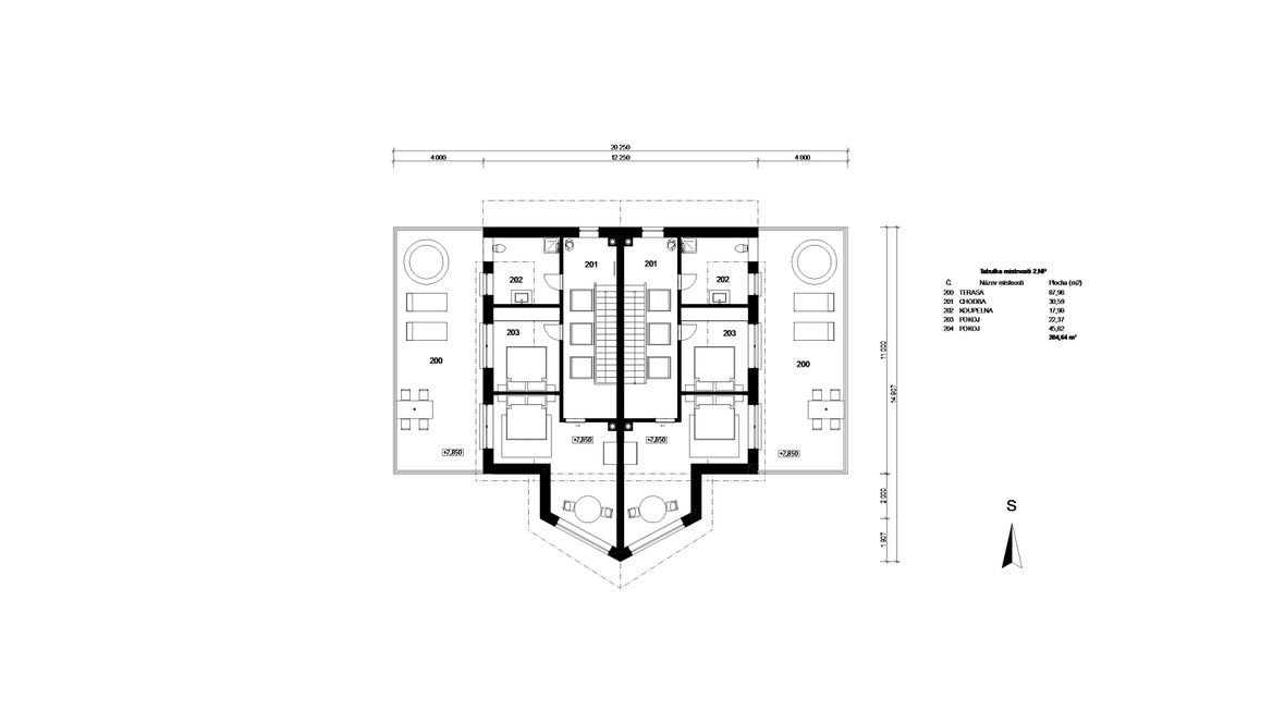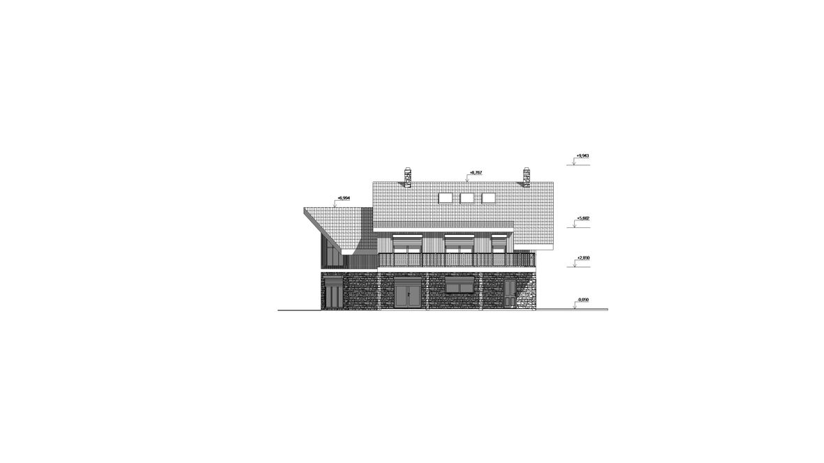 Horská chata Amundsen je dvoupodlažní objekt, rozdělený středovou nosnou zdí na dvě symetrické části. Nabízí dva od sebe oddělené apartmány, určené pro čtyřčlenné rodiny. V 1. nadzemním podlaží se nachází společenská místnost, zakončená šikmou zdí s řadou francouzských oken umožňujících prosvětlení celé místnosti, na tu navazuje jídelna s kuchyní a přístupem na terasu. Na severní straně najdeme vchod se zádveřím s možností přístupu do šatny (možno využít také jako lyžárnu). Šatna je propojena dveřmi s krytým stáním pro auta v exteriéru. Středem chaty vede chodba a schody lemující středovou zeď, vedoucí do 2. nadzemního podlaží. V 2. NP se nachází pokoje a koupelna se vstupem na velkou společnou terasu , s výhledem na okolní krajinu. HLAVNÍ MYŠLENKA: Záměrem bylo vytvořit horskou chatu, symetricky oddělenou na dvě části, s cílem rekreace a odpočinku. Snažila jsem se použít přírodní materiály, kontrast dřeva a kamene v souznění s přírodou.