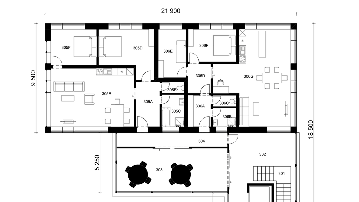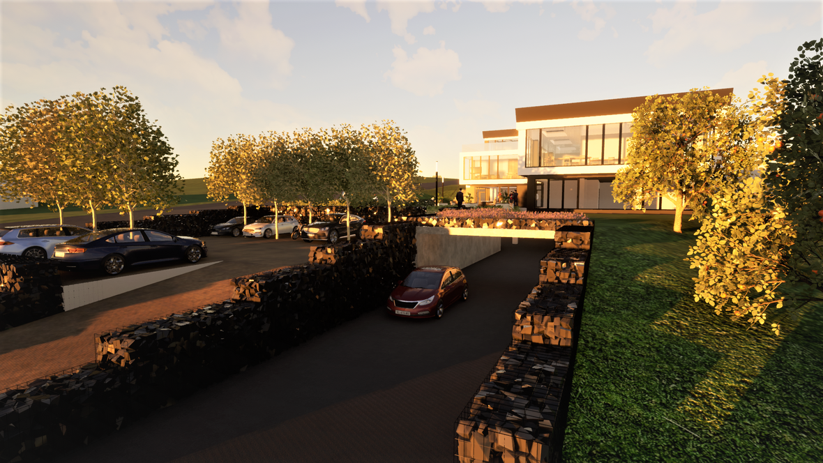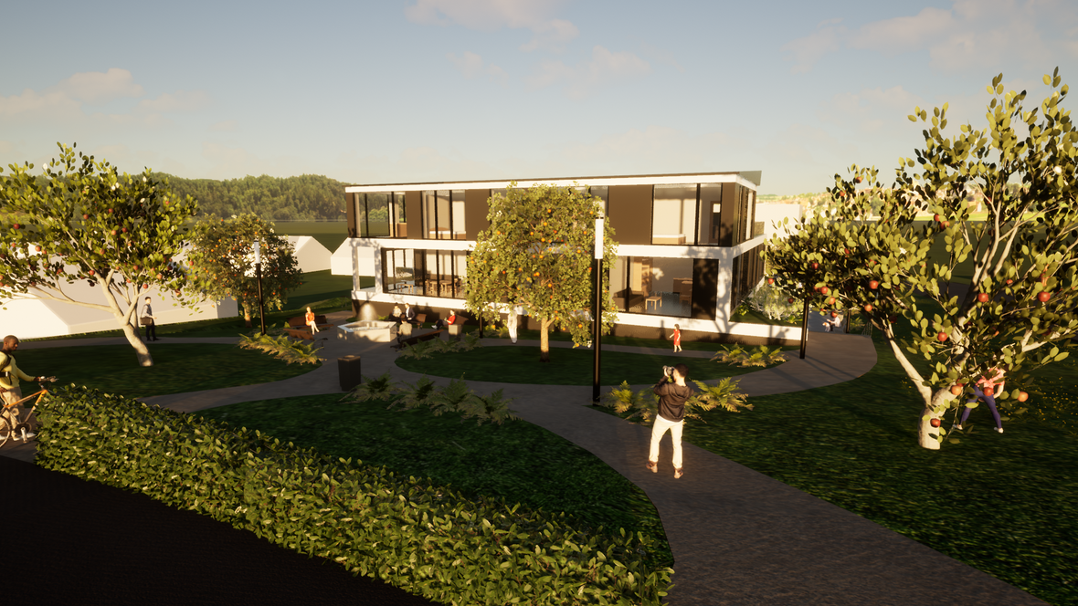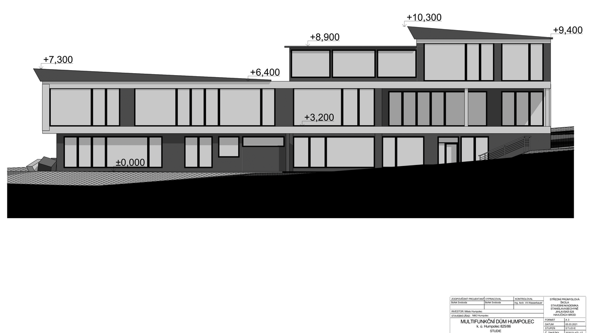 Multifunkční dům Humpolec. Součástí objektu jsou podzemní garáže, mateřské centrum, bageterie, byty ve dvou patrech, komplex kanceláří. Určité byty a kanceláře využívají světlíků. Objekt má nádvoří, dětské hřiště, moderní park a zelené plochy pro relaxaci. moderní styl stavby doplňuje odskočení druhého podlaží od prvního. Barvy objektu jsem požil černé, šedé a bílé, s menším použitím jiných doplňkových barev.
