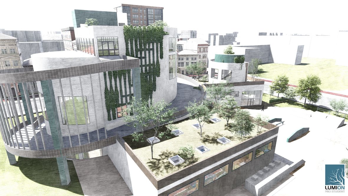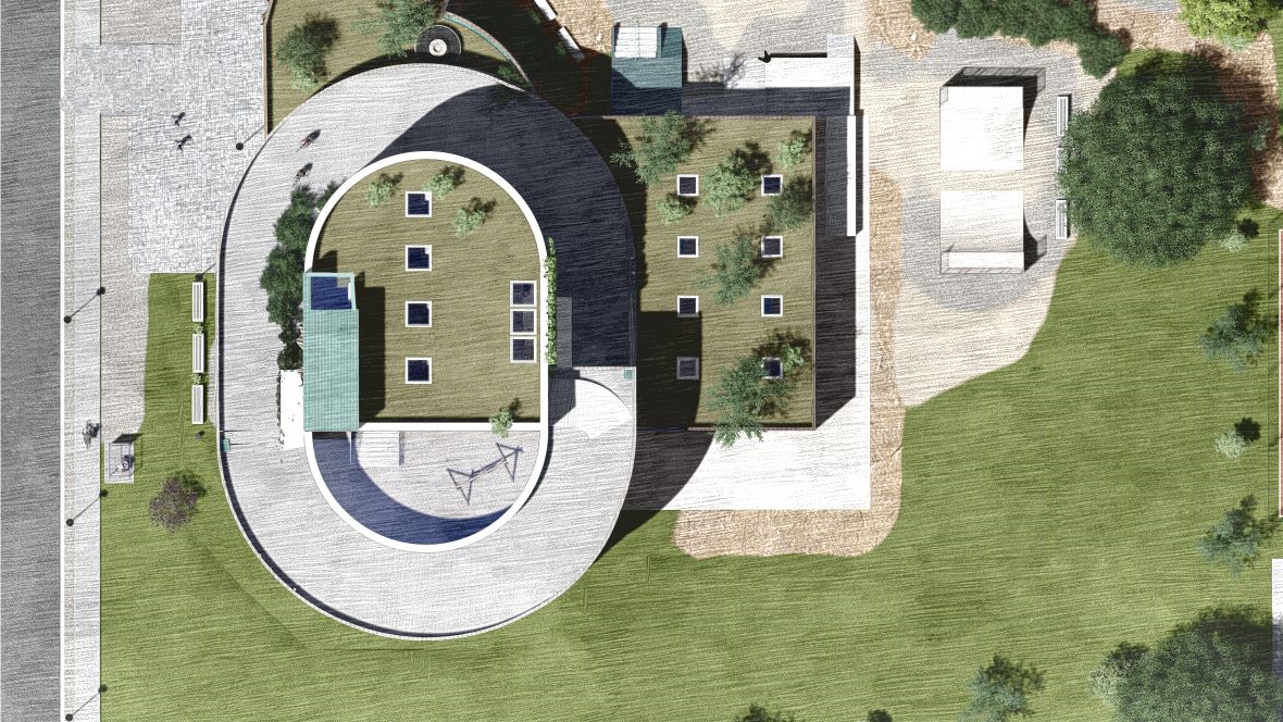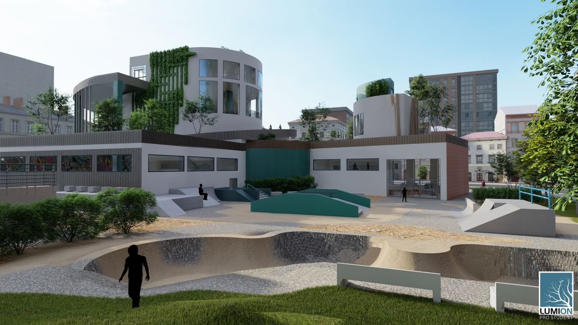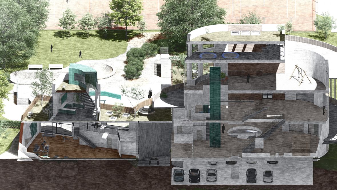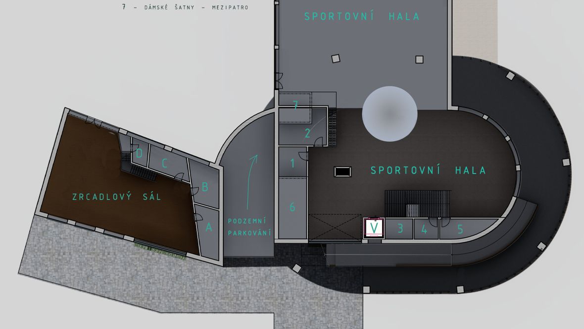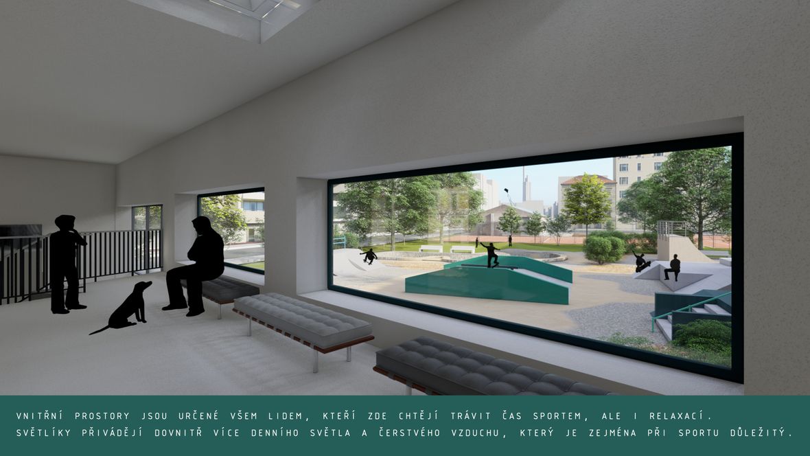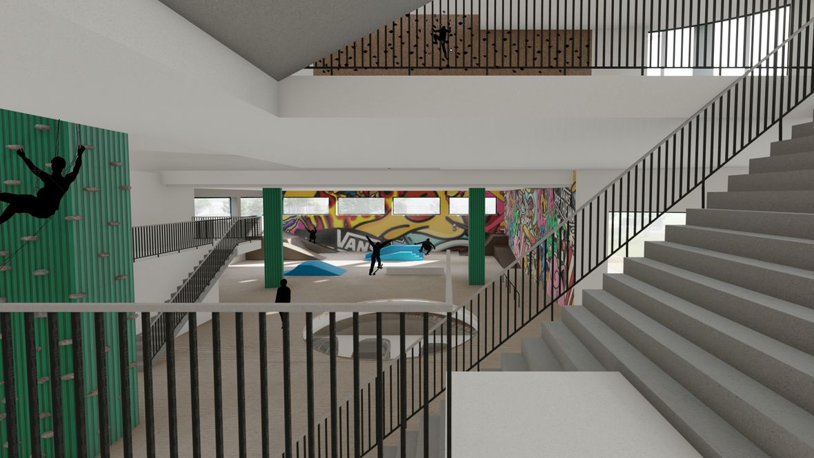 MSSH - Víceúčelové sociální sportovní haly jsou soubor hal a sálů určené především sportovním, ale i sociálním účelům. Budova má kavárnu, několik šaten, toalet a umýváren, díky kterým tu lidé mohou strávit celý den. Budova má i podzemní parkoviště, díky kterému nemusí vozidla zabírat parkový prostor kolem budovy. Mým záměrem bylo vnést do haly hlavně 2 sporty, které jsou velice populární - skateboarding, climbing, a proto by si zasloužili více prostor. Budova je díky výtahu bezbariérová.