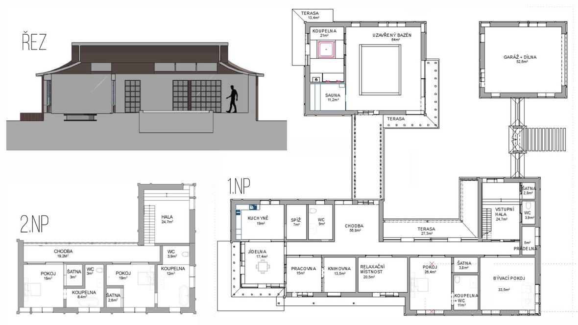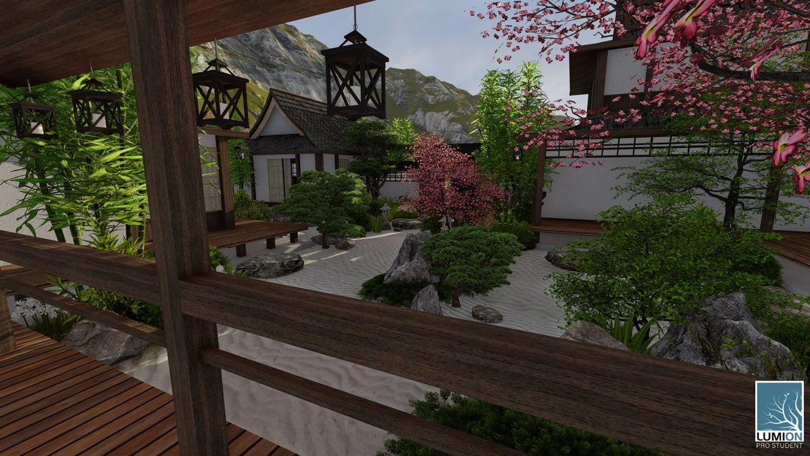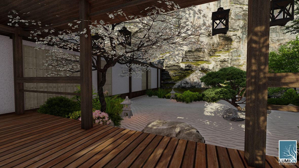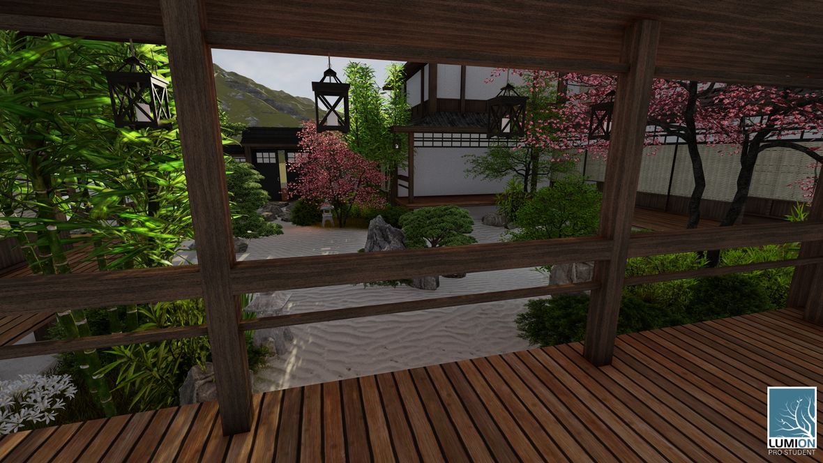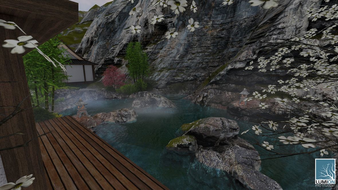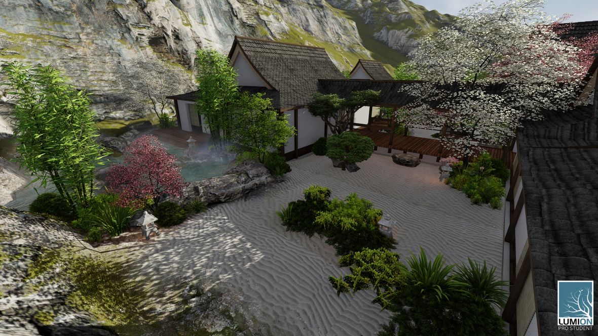 Vila se nachází v horském prostředí. Je navržena v japonském stylu s klasickou japonskou střechou. Je určena pro více člennou rodinu. Skládá se ze tří budov a to z garáže, obytné části a uzavřeného bazénu s lázněmi a horkými prameny. Bazén a lázně jsou doplněny střešními okny, aby dovnitř pronikalo více slunečního světla. Obytná část se skládá ze dvou podlaží. V 1.NP se nachází vstupní hala se šatnou a WC, prádelna, obývací pokoj, pracovna s knihovnou, relaxační místnost, kuchyně s jídelnou a ložnice se šatnou a koupelnou. V 2. NP najdeme dvě ložnice se samostatnou šatnou a koupelnou. Vila je převážně z betonu s dřevěnými detaily a sloupky doplněna o velká mřížkovaná okna.