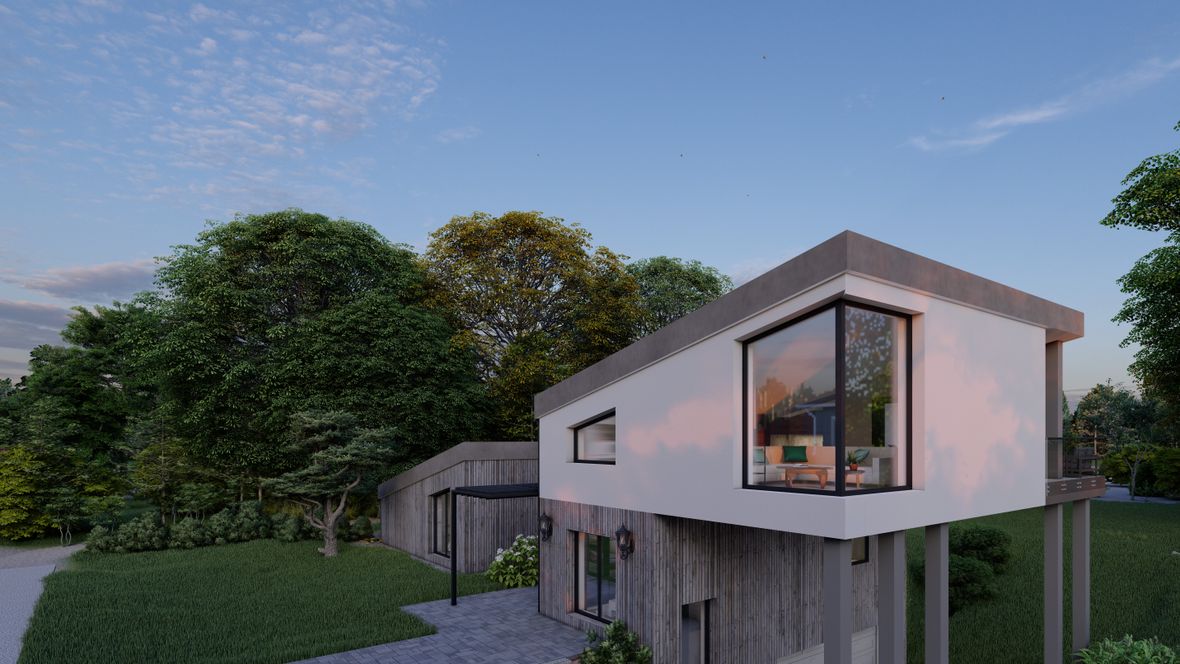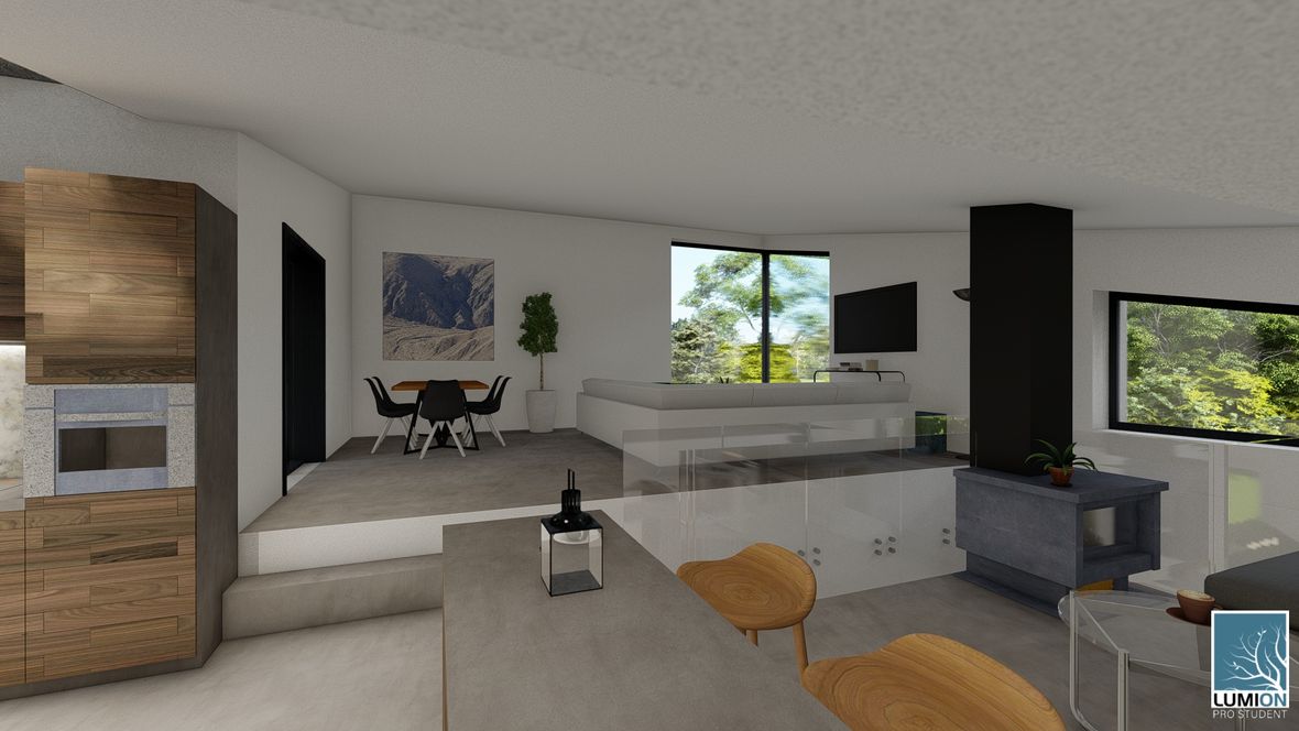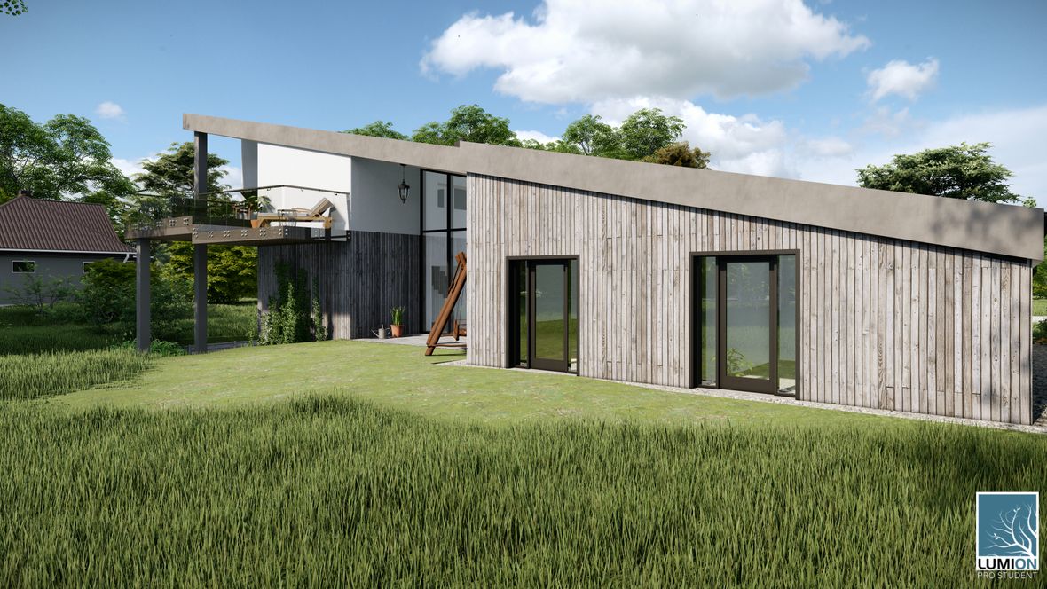 Aspect je rodinný dům atypického tvaru, který je inspirován svahy v horách. RD je ale vhodný i do měst, díky zvolení základních barev a zeleni, kterou dům obklopuje. Aspect je rozdělen na denní a noční část, které odděluje prosklená chodba s vstupem do zahrady. V suterénu je umístěna velká garáž až pro dvě auta, ze které se schodištěm dostaneme do hlavní chodby. Odtud už navazuje denní část s technickou místností, toaletou a o další patro víc až do kuchyně s obývacím pokojem. Noční část nám poskytuje další koupelnu, toaletu a tři pokoje.