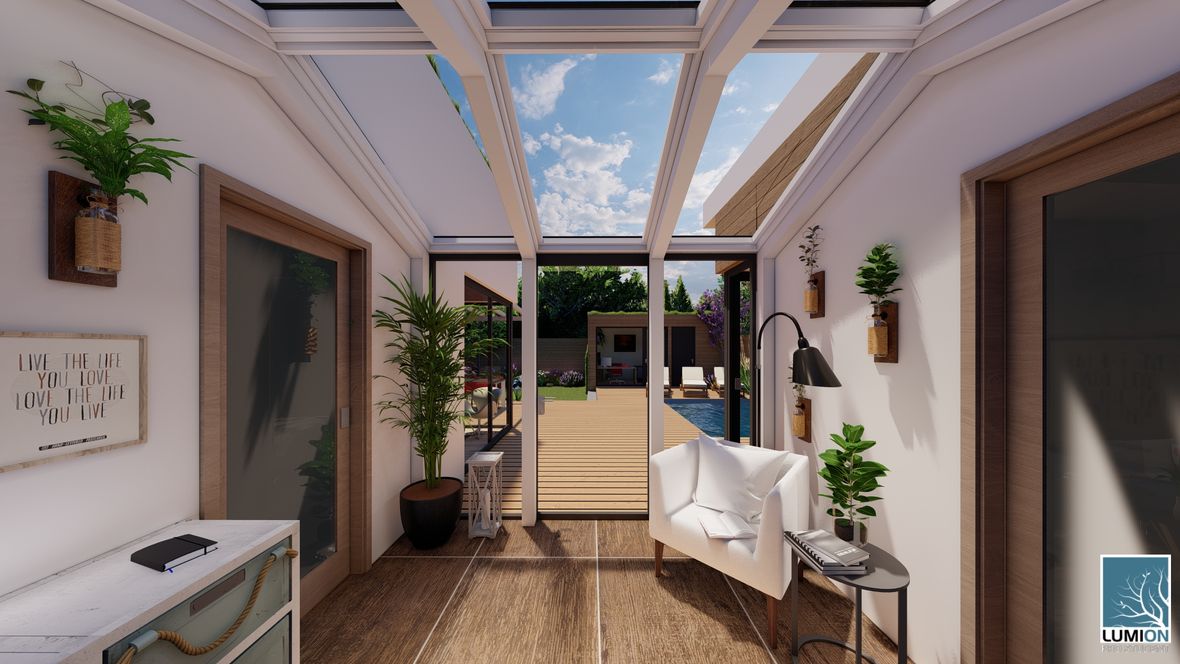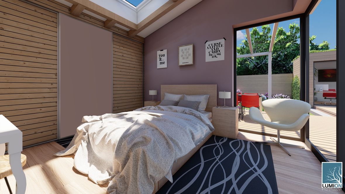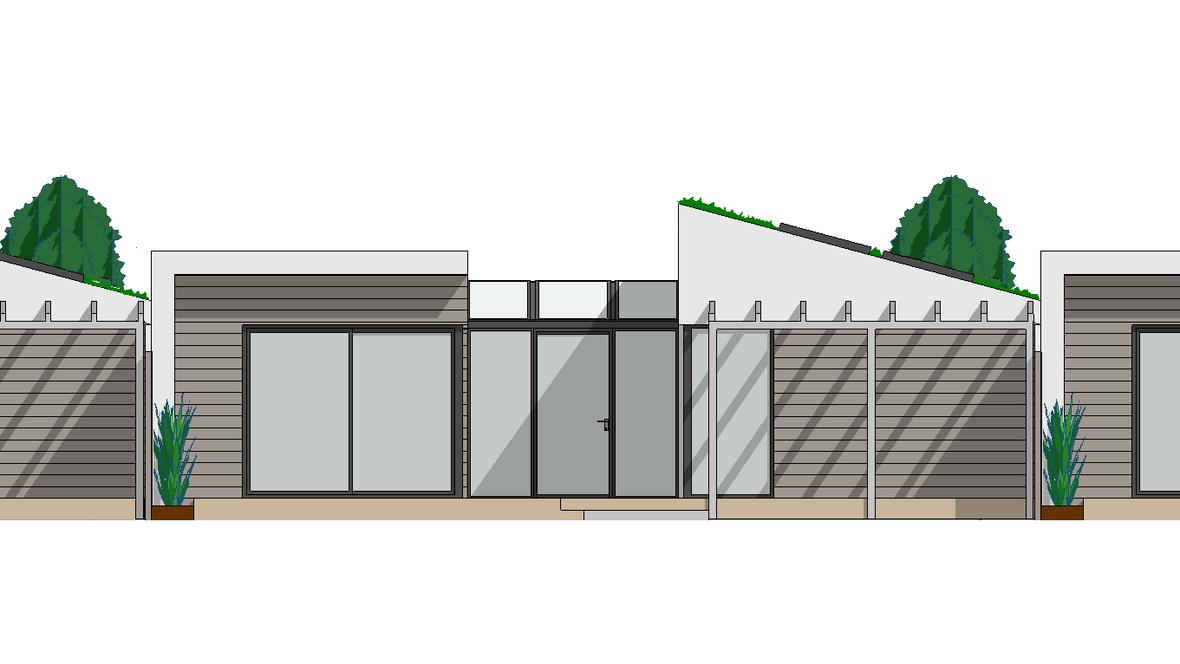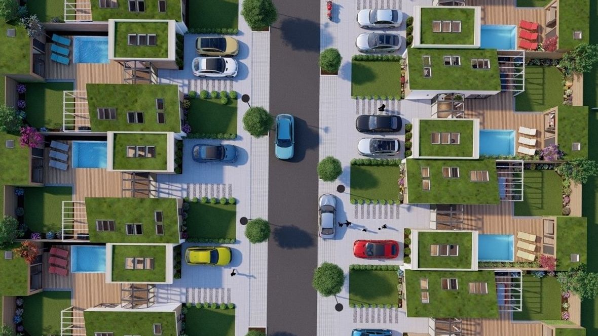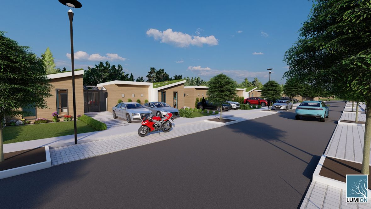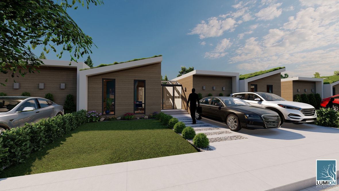 Bezbariérová zástavba Árty je moderní ekologické bydlení vhodné jak pro mladé tříčlenné rodiny, tak pro starší či hendikepované osoby. Dům je velice prosluněný, vzdušný a díky dřevěné konstrukci, zelené střeše a řadové zástavbě energeticky nenáročný. Rozdělení budovy na dvě části, spojené menším atriem, zajišťuje všem jejím obyvatelům pohodu, klid a soukromí. Navzdory řadové zástavbě můžete na prostorné a soukromé terase najít velký bazén, posezení u grilu s mechanickým stíněním a dokonce mobilní pracovnu se skladem. Samozřejmě tu nechybí menší zahrada plná květin, zavlažovaná dešťovou vodou z nádrže umístěné přímo pod trávníkem. Díky malé ploše pozemku a smog pohlcujícím zeleným střechám je projekt Bezbariérové zástavby Árty skvělá volba pro rozrůstající se města.