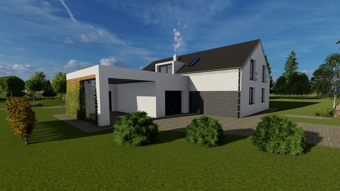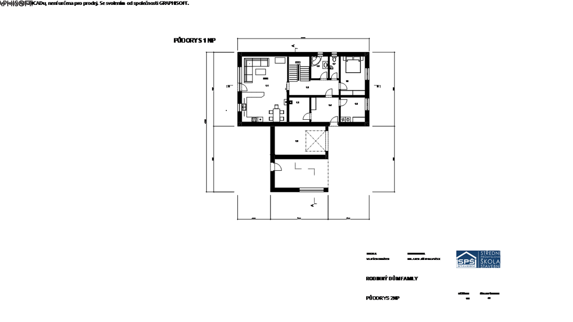 Jak již název napovídá, jedná se o dům navržený primárně pro menší rodinu ale větší rodina nebude mít problém. Je zde možnost využití prostorné garáže na velká auta, ale případně je možnost využití krytého stání vedle garáže. V prvním nadzemním podlaží se nachází relativně velké obytné prostory na které navazuje nekryté venkovní posezení. Dále je zde ložnice pro hosty. Nyní se přesuneme do 2. nadzemního podlaží, kde jsou umístěny dětské pokoje, manželský pokoj a nesmí chybět pracovna. Pro větší prostor je zde možnost využití ploché střechy jako terasy zastřešené plochou vegetační střechou. Obytný prostor je zastřešen sedlovou střechou bez přesahů se sklonem 35° s antracitovými taškami. Na fasádě je hojně použit kamenný obklad z černé břidlice a dřevěné prvky. Střešní okna Velux GPL MK08 3066 jsou opatřeny venkovními žaluziemi proti nadměrnému přehřívání podkroví. Proudění světla do místnosti pomáhá velké francouzské okno v obývací části přízemí, které je orientováno na jižní stranu.