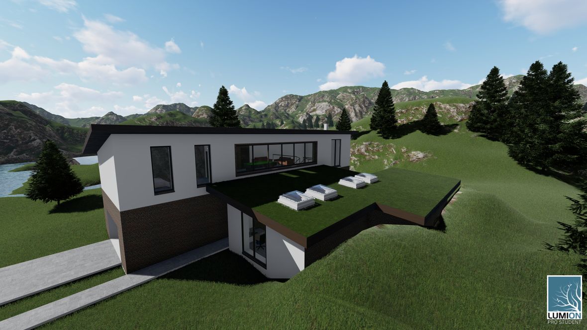 Horská vila Freya splývá s krásným prostředím krajiny. Panoramata, která vila nabízí, si zamilujete. Větší rozloha a vzdušnost společenských místností není k zahození. Tři ložnice a pracovna s hernou umožnují příjemný pobyt v horském prostředí celoročně. Střešní okna Velux poskytují potřebné množství světla. Střešní světlíky Velux dodávají taktéž dostatek světla do pokojů v prvním patře, jejichž zelená střecha splývá s terénem okolí. To vše nabízí Horská vila Freya.