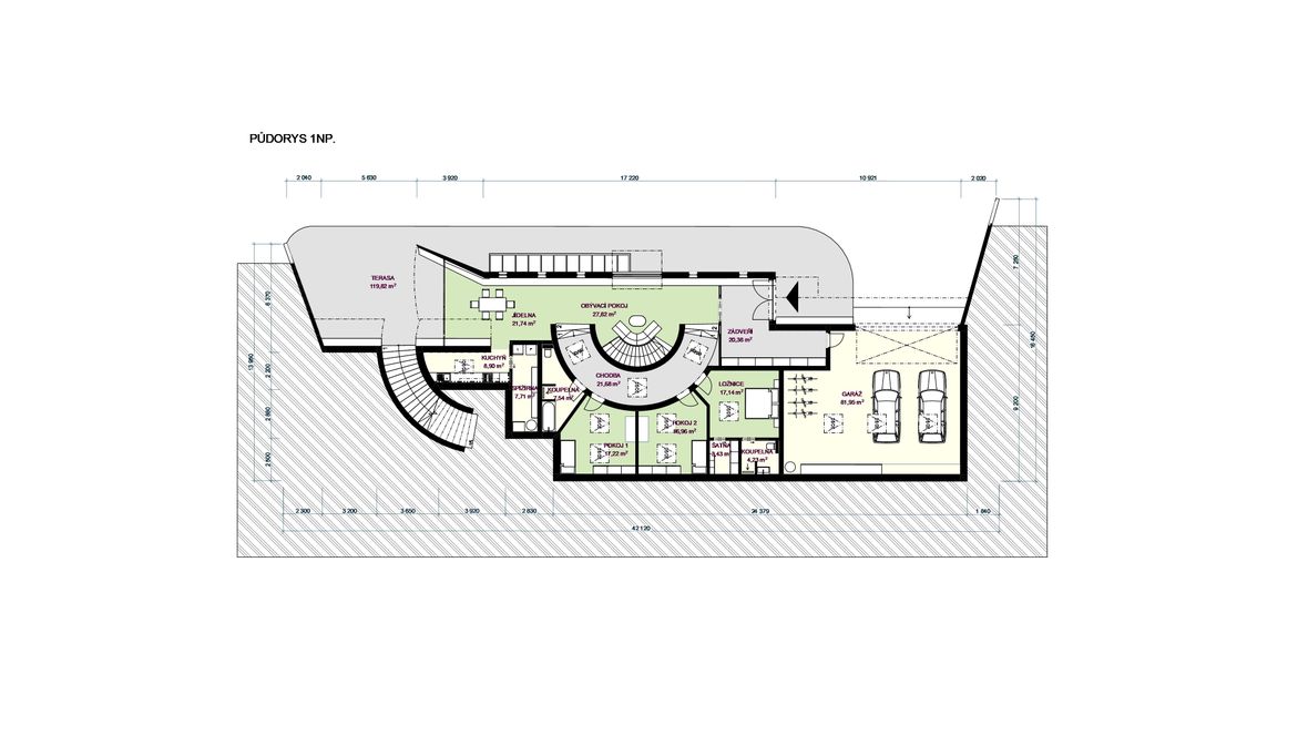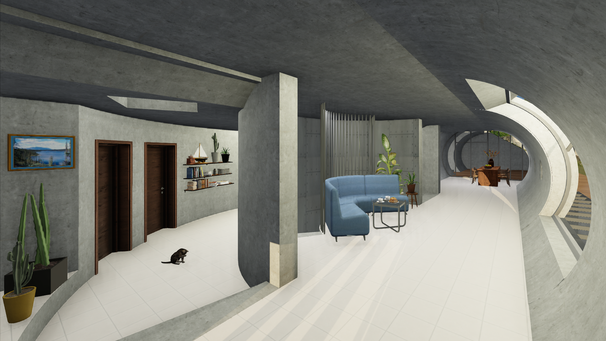 RD Apollo 13 je určen pro náročnější čtyřčlennou rodinu, která dychtí po originalitě. Tento originální dům připomíná raketu. Vypadá jako drobeček, ale jeho velikost se skrývá pod zemí. To umožňuje zapuštění domu do svažitého terénu. Podzemní místnosti jsou osvětleny světlíky VELUX INTEGRA CVP. Povrch zdí v interiéru je tvořen pohledovým betonem. Z venku je objekt opláštěn nerezovými plechy připevněnými ke KCI nýty. Vevnitř se nachází zatáčející chodba, která připomíná labyrint vesmírné lodi. V obývacím pokoji je velké zaoblené okno se clonou (kterou lze zavřít díky hydraulickému mechanismu), z něhož se lze kochat krajinou. Z obývacího pokoje vede schodiště do suterénu s technickou místností a wellness. Ve wellness se nachází několik sloupů s povrchovou úpravou z nerezových plechů, které podpírají obvodovou stěnu 1NP. Wellness disponuje výkonným větracím systémem, který je v prostoru přiznaný a tím připomíná strojovnu rakety. Část stropu nad bazénem je prosklená což zajistí přísun světla. Z prkenné terasy se lze po mírně točitém schodišti dostat na zahradu. Tento jedinečný dům zaručí nejlepší podmínky pro život v soukromí s kontaktem s přírodou.