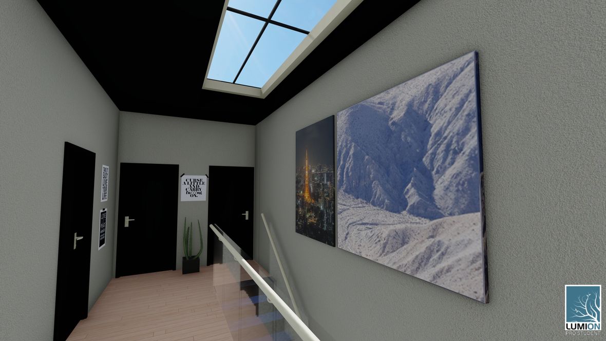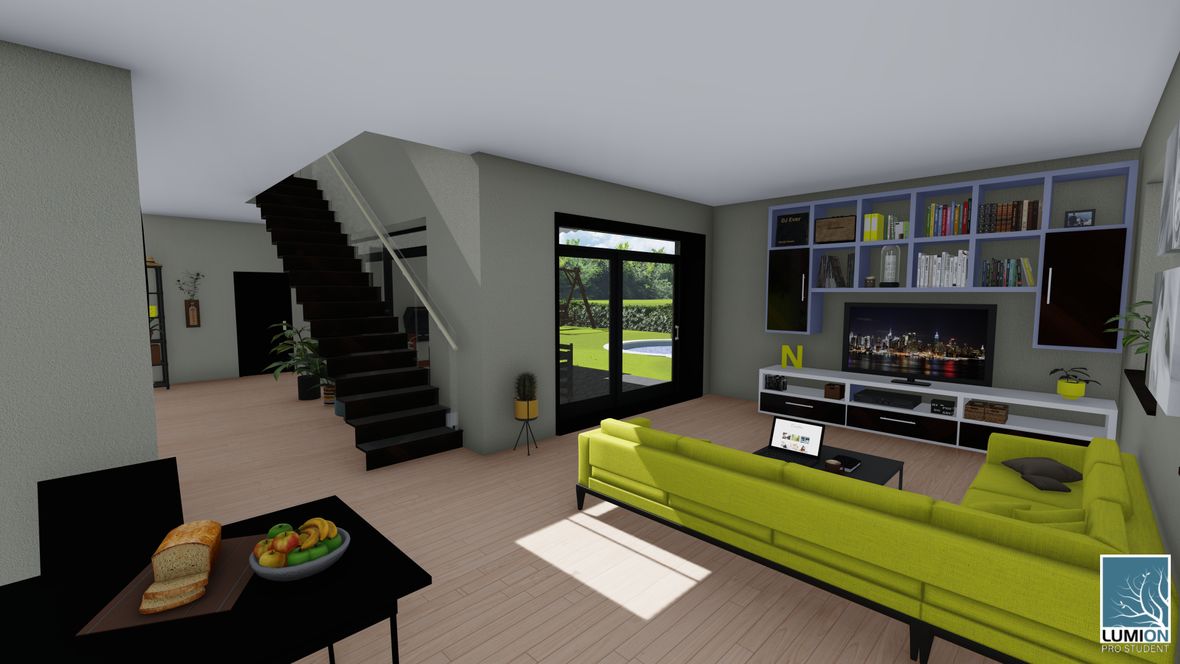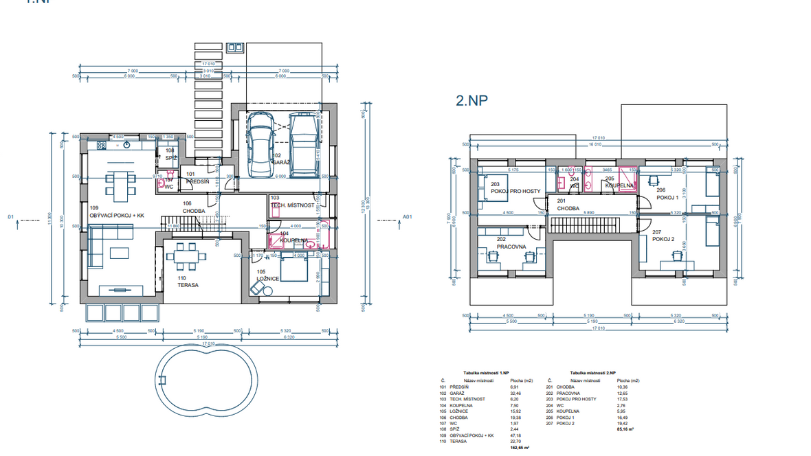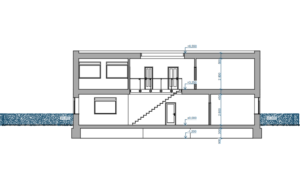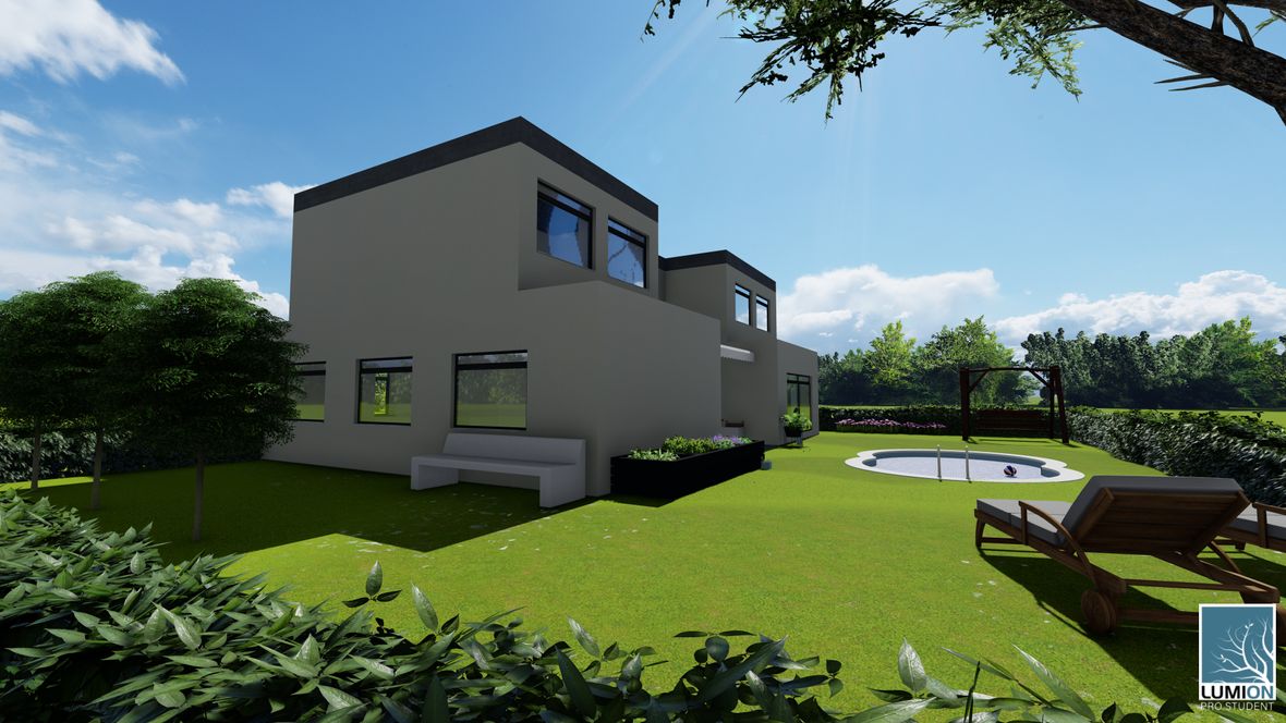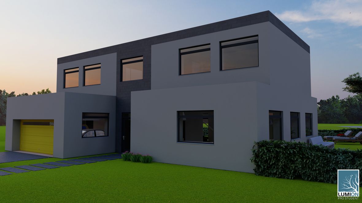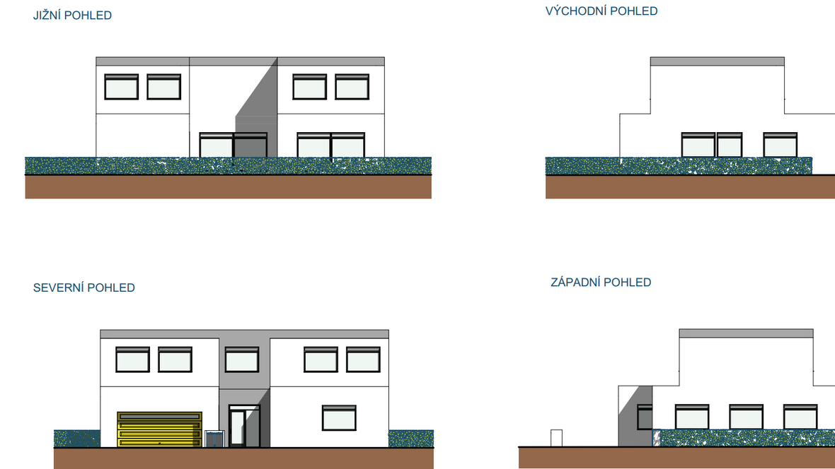 Rodinný dům Helis je vzdušná prostorná stavba určena pro čtyřčlennou rodinu. Objekt má netradiční tvar písmene H a plochou střechu s vegetací nad několika místy v 1.NP, je rozdělen na dvě nadzemní podlaží. V prvním podlaží se nachází v levé části kuchyňský kout spojený s obývacím pokojem, z kterého vede průchod přímo na terasu. Klidová zóna pak zaujímá pravou část, kde je z ložnice velkými okny výhled do zahrady. V pravé části je pak ještě umístěna koupelna, technická místnost a garáž, z níž se vchází do předsíně. Do 2.NP vede schodišťové rameno, na které dopadá denní světlo čtyřmi vedle sebe osazenými VELUX světlíky s plochým zasklením. Chodbou se dostaneme do dvou dětských pokojů a jednoho pokoje pro hosty s pracovnou, koupelny a WC. Na fasádu je použita hrubá vápenná omítka bíle barvy, která je doplněna o šedivý venkovní obklad.