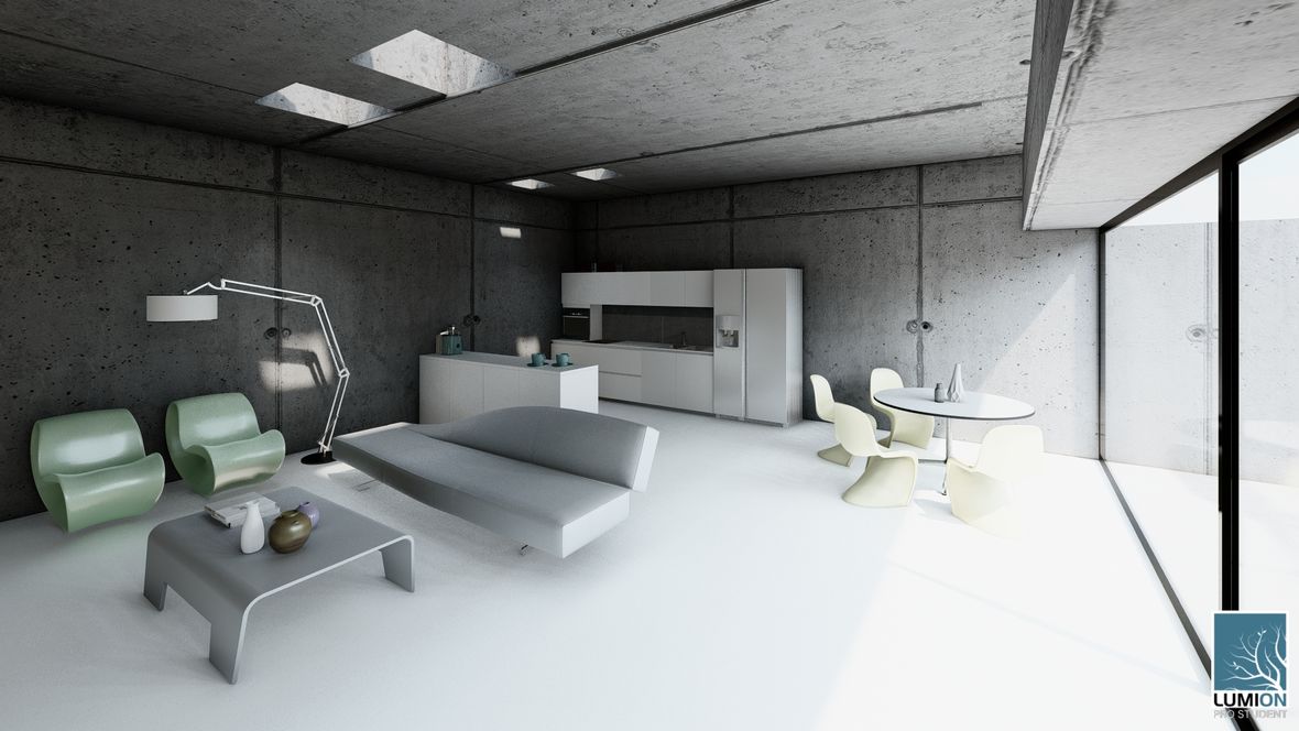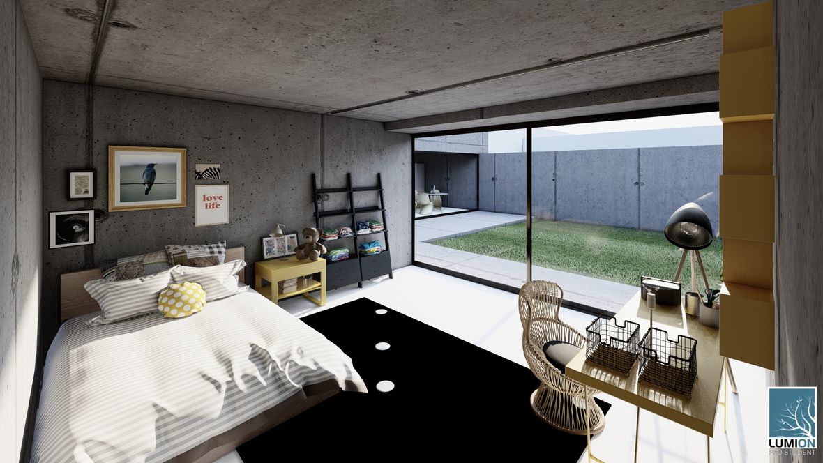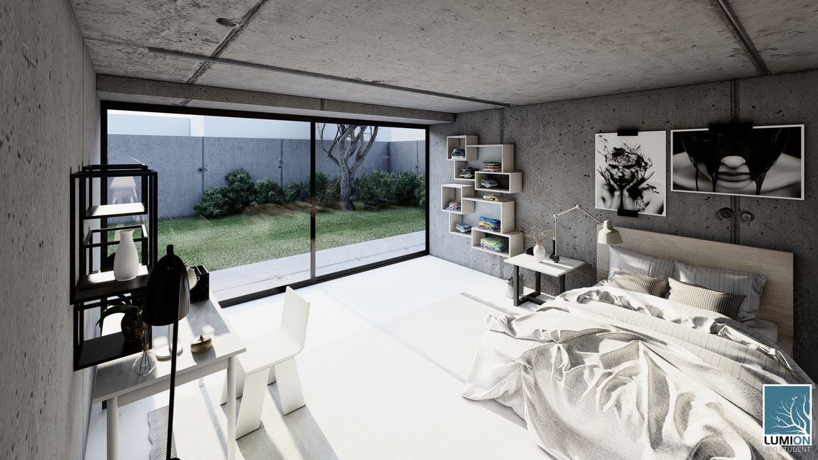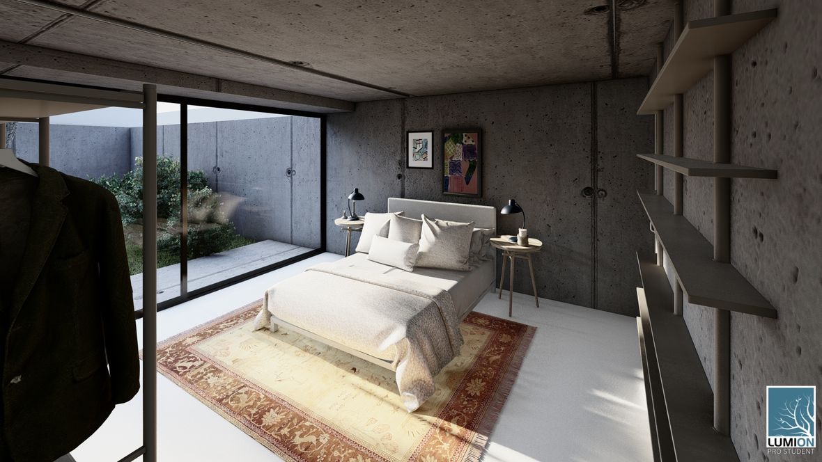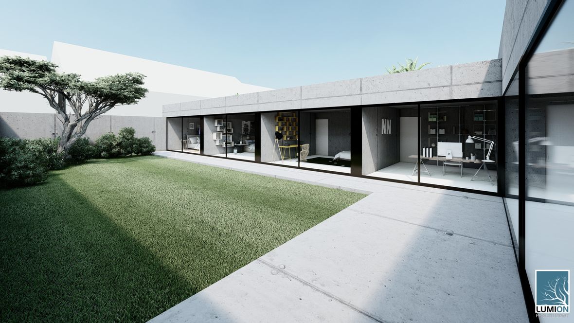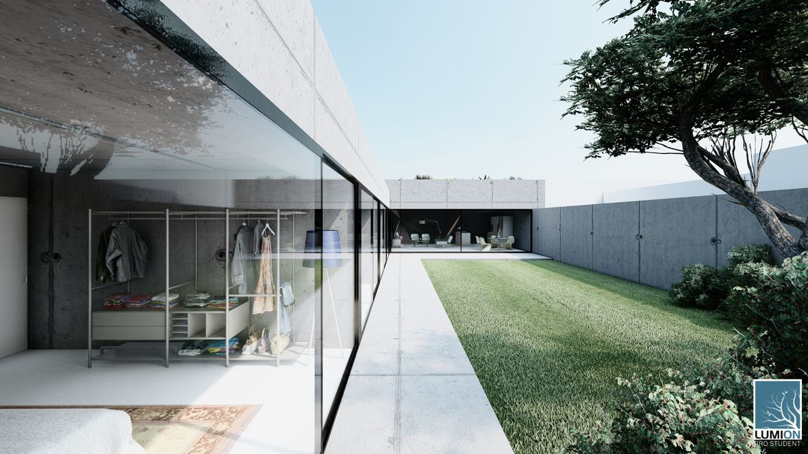 HLAVNÍ MYŠLENKA MÝM CÍLEM PŘI NÁVRHU BYLO VYTVOŘIT ŘADOVÝ DŮM V HUSTÉ ZÁSTAVBĚ, KDE I PŘESTO BUDE DOSTATEČNÉ MNOŽSTVÍ SVĚTLA. PROTO JSEM VYUŽILA SVĚTLÍKY A DVĚ ATRIA, KTERÉ PROSVĚTLUJÍ PROSTORY DOMU. OKNA, KTERÁ DO ATRIÍ SMĚŘUJÍ, JSOU POSOUVATELNÁ, ABY PROSTOR PŮSOBIL OTEVŘENĚ A CO NEJVÍC SE "SMAZALA" HRANICE MEZI INTERIÉREM A EXTERIÉREM. ARCHITEKTONICKÉ ŘEŠENÍ A DISPOZICE DŮM Z MONOLITICKÉHO BETONU JE SLOŽEN ZE DVOU ČÁSTÍ VE TVARU PÍSMENE L ZASTŘEŠENÝCH ZELENOU STŘECHOU. JSOU TAM TAKÉ DVĚ ATRIA, DO KTERÝCH VEDOU VŠECHNA OKNA V OBJEKTU. ŽÁDNA OKNA NESMĚŘUJÍ DO ULICE Z DŮVODU MAXIMÁLNÍHO SOUKROMÍ A MINIMÁLNÍHO HLUKU. Z HLEDISKA DISPOZICE JE RODINNÝ DŮM URČEN PRO ČTYŘČLENNOU RODINU A ROZDĚLEN NA SPOLEČENSKOU A KLIDOVOU ZÓNU.
