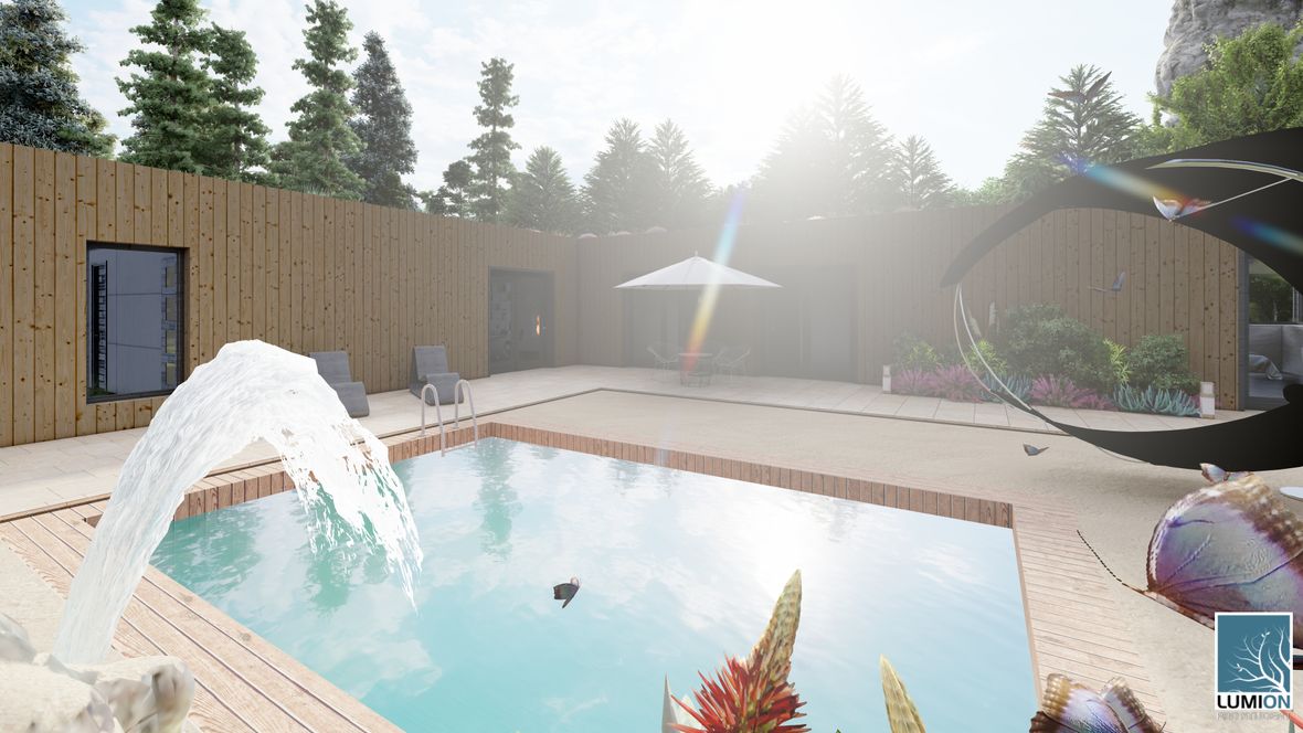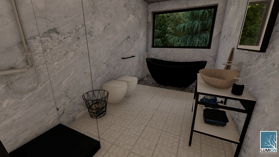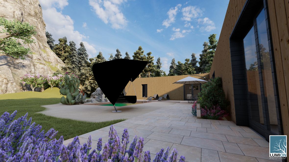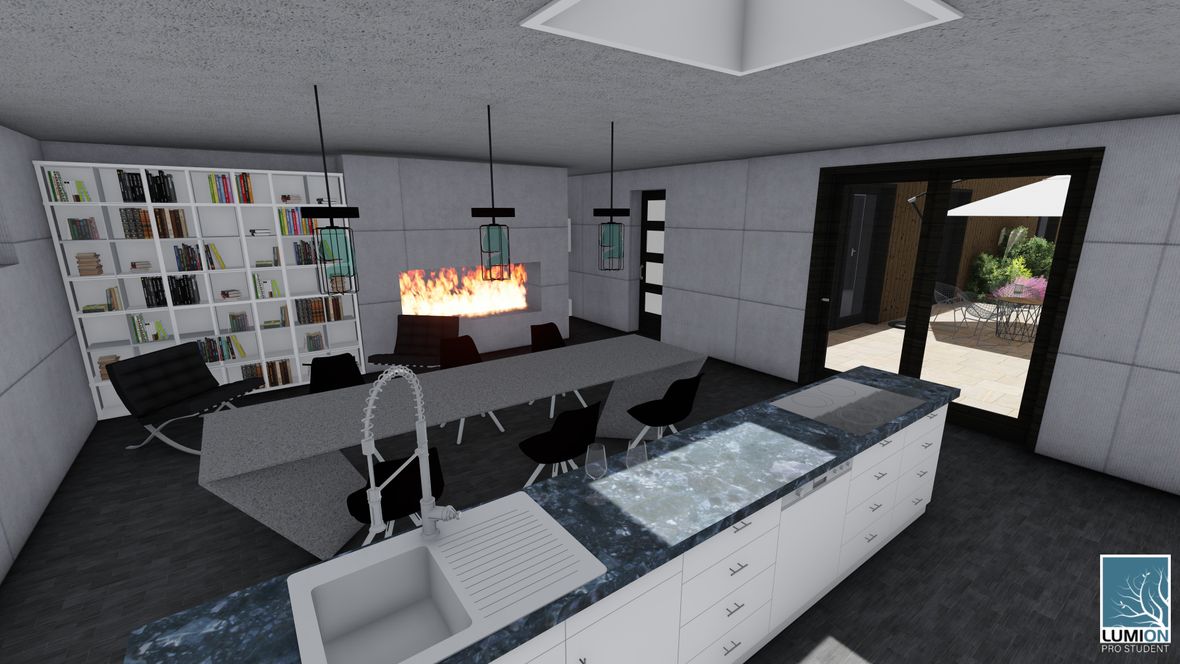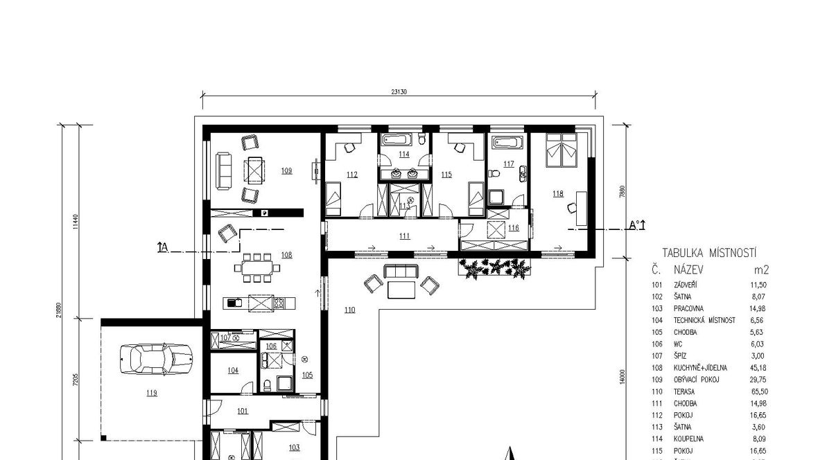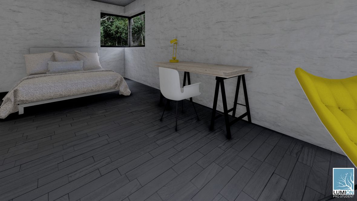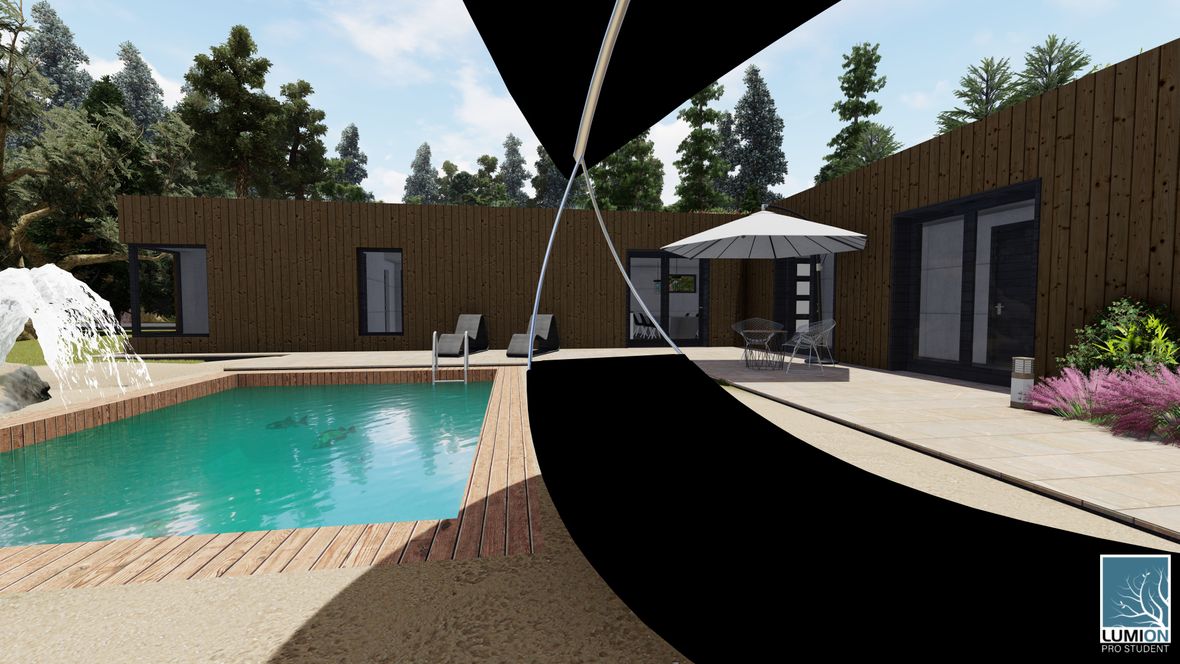 Dům je situován na rovinatém terénu v blízkosti opuštěného pískovcového lomu. Materiálové složení objektu bylo omezeno na dřevo, sklo a beton. Jejich kombinace vytváří jednoduchý a kontrastní design. Dřevěný obklad na fasádě a vegetační střecha má za cíl dokonalé splynutí s okolní krajinou. Prioritou bylo vytvořit příjemné a osvětlené místo s výhledem do přírody. Pro optimální osvětlení místností v domě je využito světlíků a světlovodů Velux. Objekt je určen pro 4-členou rodinu. Disponuje krytým stáním pro auto, překrásnou vzrostlou zahradou, venkovním bazénem a obrovskou terasou. Velký důraz je kladen na funkčnost i praktičnost bydlení. V celém domě je podlahové vytápění, okna mají navrženy venkovní žaluzie. Předností domu je oddělená klidová zóna od společenské. Všechny konstrukce jsou zděné ze systému Heluz. Dům využívá technologií tepelného čerpadla (země - vzduch), rovněž disponuje nádrží pro využití šedé vody pro toalety a zavlažování vegetace. Při poruše čerpadla je možné topit dřevem v krbu, který se nachází mezi jídelnou a obývacím pokojem.