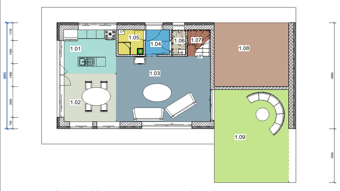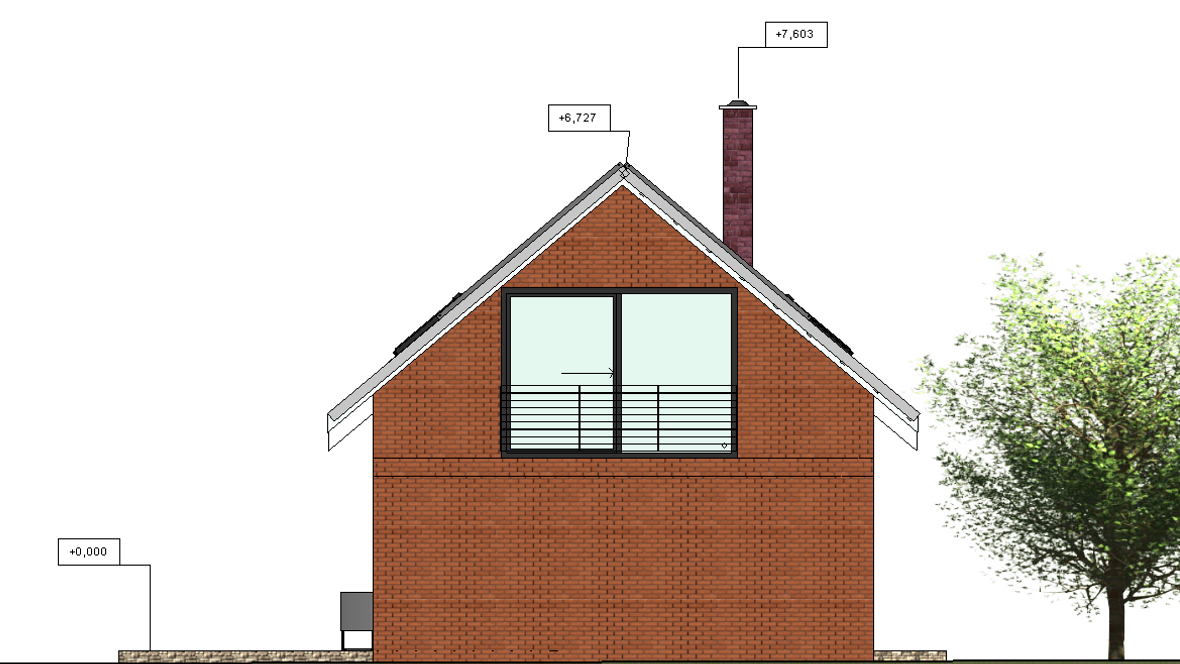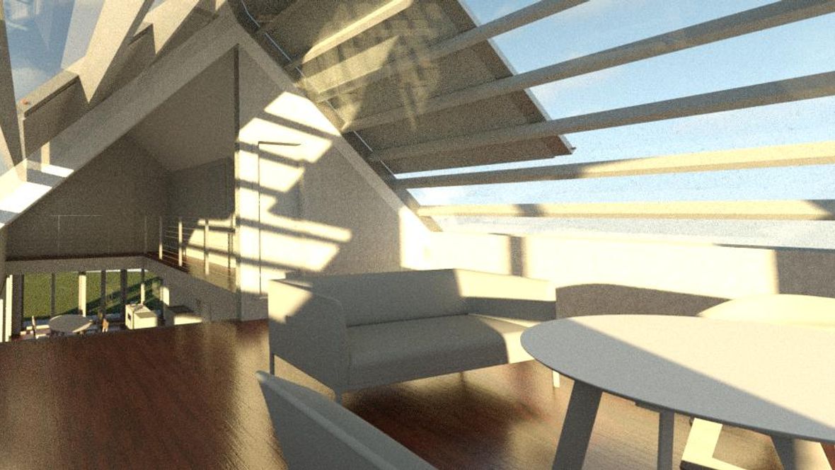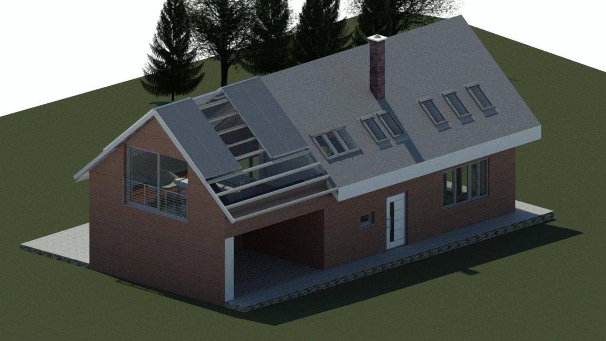 Calm House je dvojpodlažný útulný domček určený pre mladú trojčlennú rodinu, navrhnutý v industriálnom štýle a predstavuje typ bývania, ktoré slúži najmä na rekreáciu počas voľných dní. Naším zámerom bolo navrhnúť dispozíciu tak, aby pôsobila voľne a zároveň vzdušne. Objekt sme rozdelili na dennú a nočnú časť. 1.NP (denná časť) - tvorí ju: zádverie, kúpeľňa, toaleta, kuchyňa a jedáleň spojená s obývacou izbou poskytujúca východ na terasu a výhľad na okolitú prírodu a schodisko, ktoré prepája jednotlivé podlažia. 2.NP (nočná časť) - tvorí ju: chodba, toaleta, spálňa a zimná záhrada s okúzľujúcim výhľadom. Dominantným prvkom je využitie strešných okien od spoločnosti VELUX, ktoré umožňujú prirodzené osvetlenie a vetranie jednotlivých miestnosti podkrovia a poskytujú nám vizuálny kontakt s prírodou. Ďalšou dominantou sú presklené štíty sedlovej strechy so solárnymi panelmi, ktoré okrem presvetlenia zimnej záhrady slúžia na výrobu energie na ohrev vody.