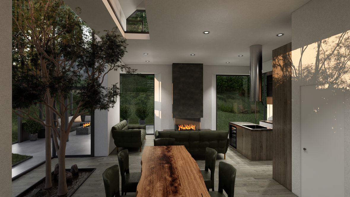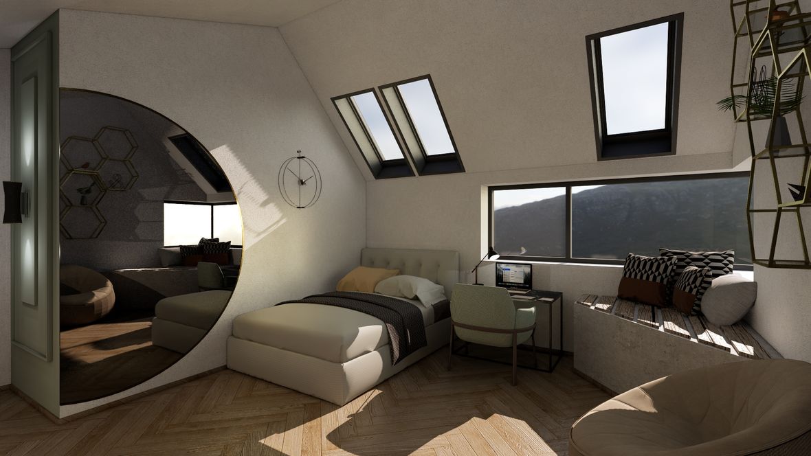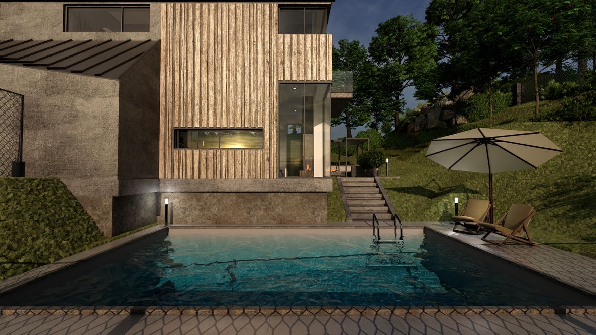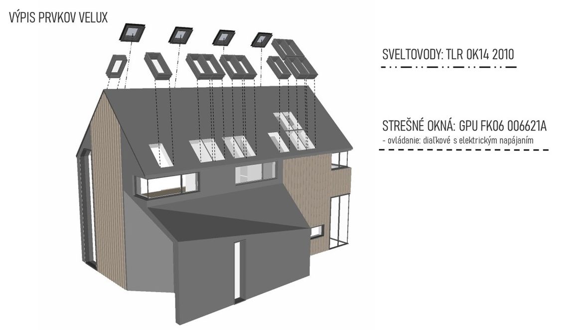 Dvojznačný názov LESNÁ VI/ÍLA je konceptom dvoch súbežných línií. Ako LESNÁ VÍLA rešpektuje tichý chod prírody, ukrývajúc sa v jej útrobách pred zvedavým zrakom sveta. Avšak, žije si svojim životom v celej svojej majestátnosti a intimite. Línia LESNEJ VILY vypovedá o osobitom architektonickom posolstve tohto rodinného domu. Konštrukcia domu vôbec nenarúša puto vytvorenej symbiózy s prírodou. Použitie množstva dreva a kameňa v interiéri a exteriéri len potvrdzuje túto myšlienku. Priame prepojenie okolia s dennou časťou domu je umožnené vďaka zimnej záhrade a veľkým preskleným plochám, umiestneným v rohoch obývacej izby pre dokonalý zážitok sledovania krajiny z tepla domova. Vchod na terasu je rafinovane umiestnený v zimnej záhrade pre minimalizovanie tepelných strát obývacej izby v chladných mesiacoch roka. Nočná časť je dostatočne presvetlená a vertikálne prevetrávaná vďaka strešným oknám VELUX - GPU FK06 006621A. K dokonalému dosvetleniu izieb dopomáhajú svetlovody VELUX - TLR 0K14 2010.