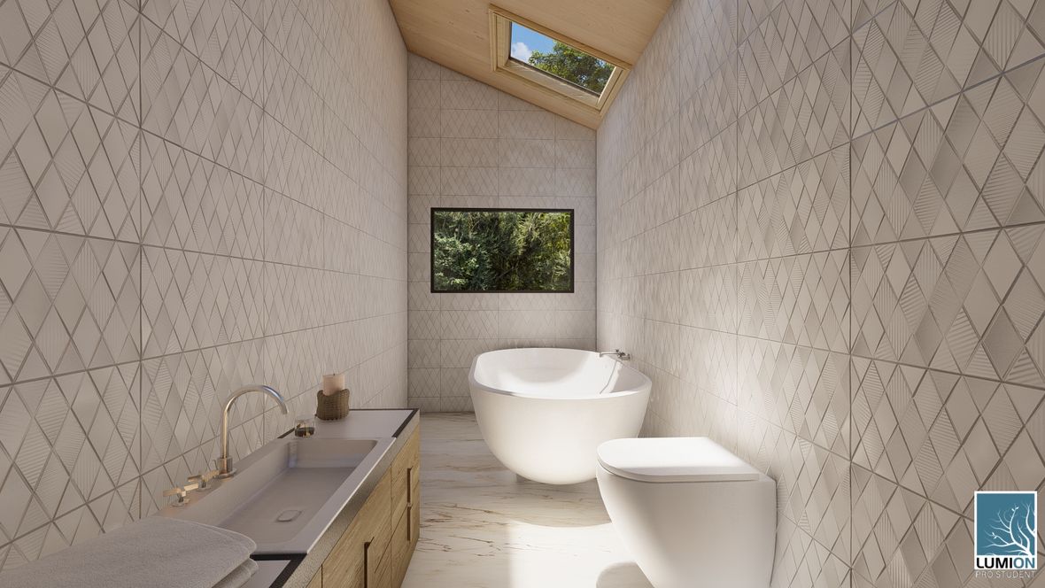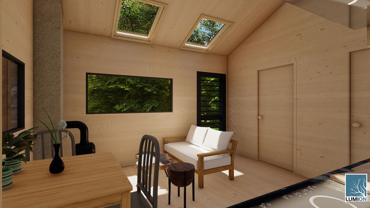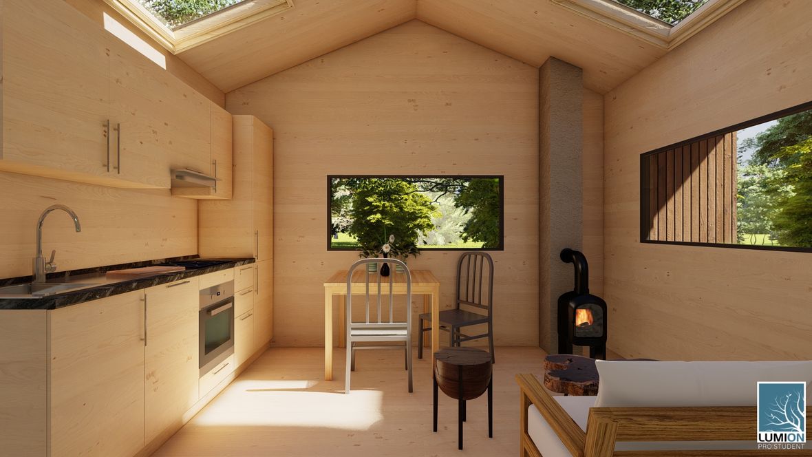 Niitty je rodinný dom určený na rekreáciu v lesnom prostredí. Vyznačuje sa svojou jednoduchosťou a minimalizmom. Konštrukciu tvoria CLT panely a fasáda pozostáva z kombinácie dreveného a kamenného obkladu. Použité materiály robia dom ekologickým, a tak do lesného prostredia príjemne zapadne. Na dokonalé osvetlenie interiéru som použila okrem fasádnych okien, strešné okná VELUX GGL INTEGRA. Vďaka strešným oknám, je taktiež možné prevetrať celý objekt komínovým efektom.