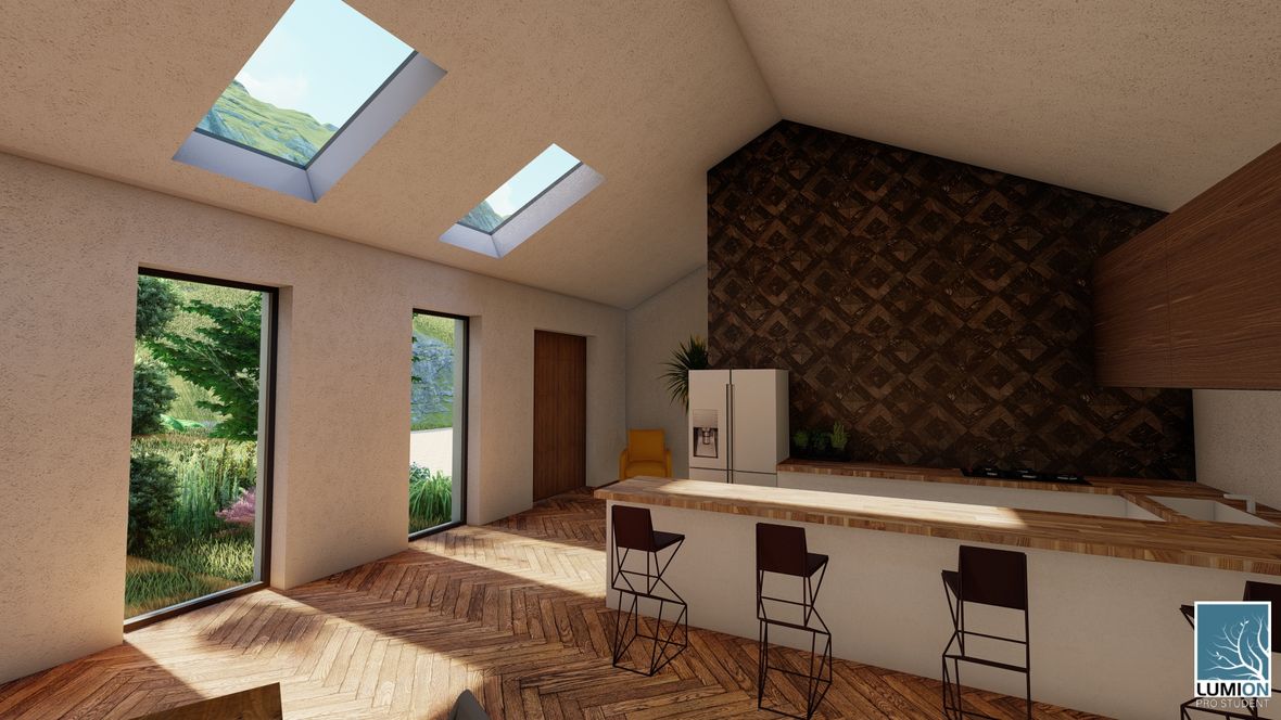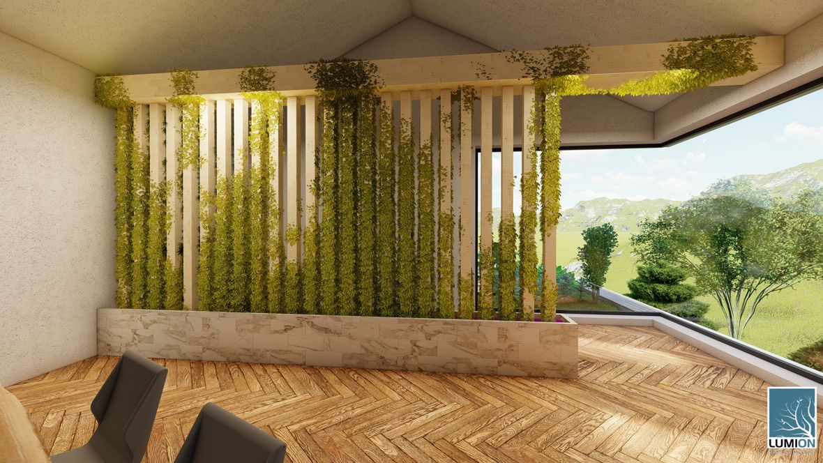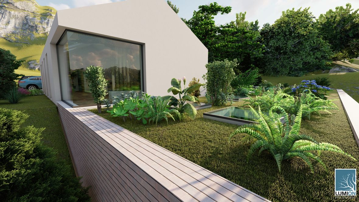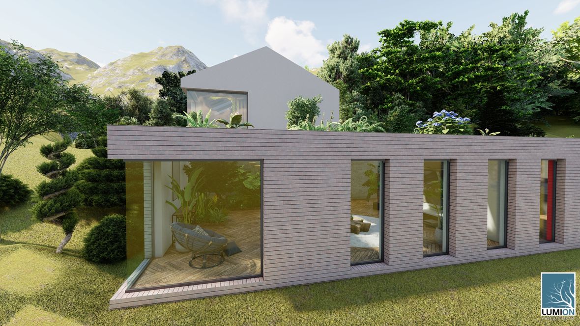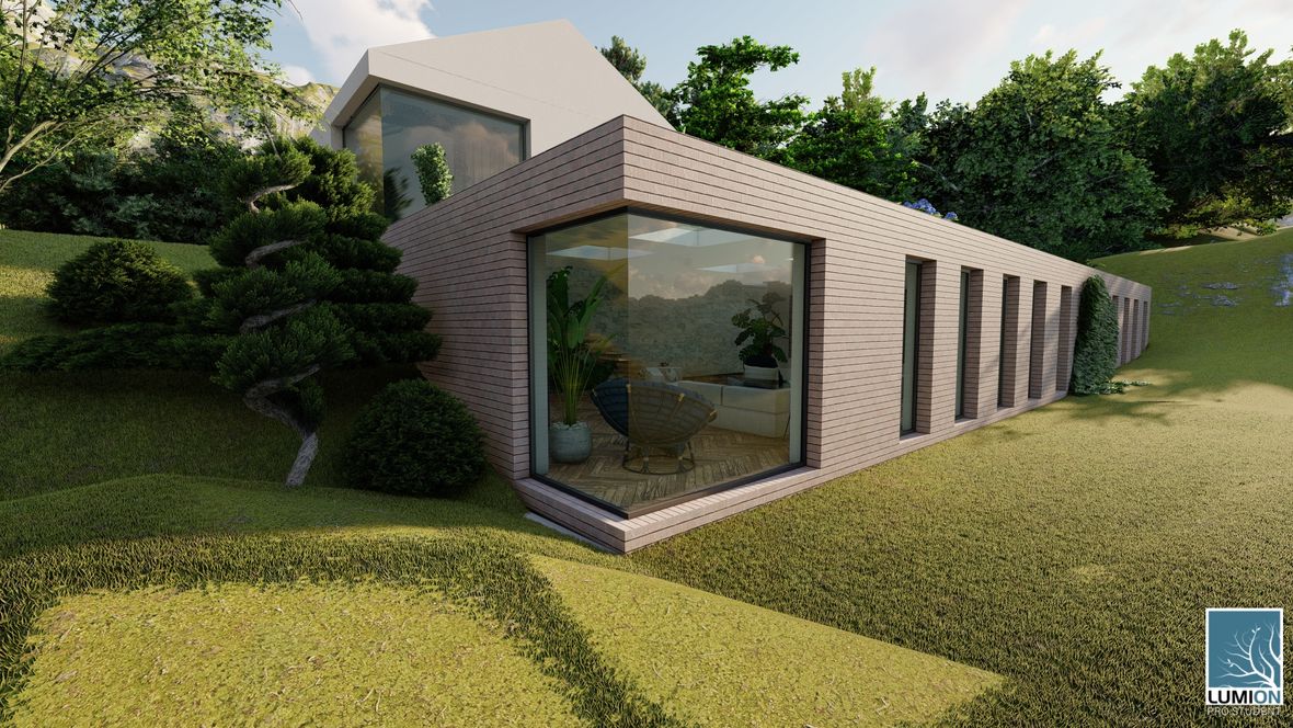 Rodinný dom YHTEYS je vyjadrením prepojenia rodinného domu z krásou prírody. Jednoduché tvary obohatené atypickými rohovými oknami robia dom zaujímavým. Zeleň použitá priamo v dome dodáva domu nádych elegancie a luxusu. No hlavne spríjemňuje pobyt v ňom. Strešné okná a svetlíky zabezpečujú dostatočný prísun denného svetla a čerstvého vzduch.